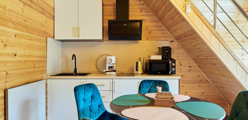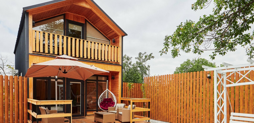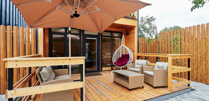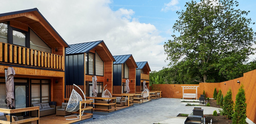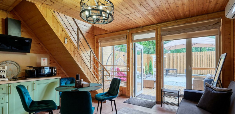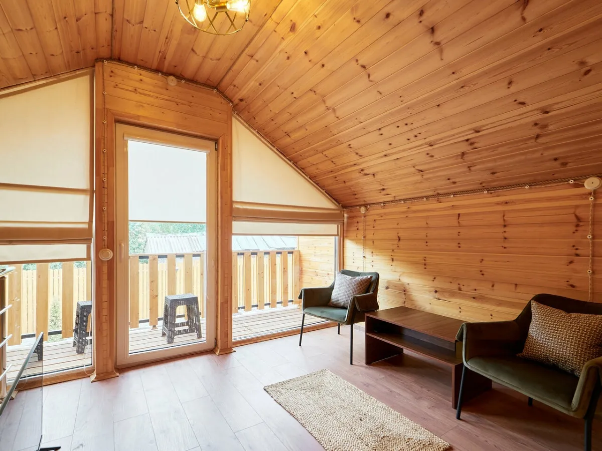 Гости размещаются в отдельных коттеджах с собственной террасой, что создает ощущение приватности и комфорта. На территории предусмотрен закрытый двор с зонами отдыха на свежем воздухе, что делает размещение особенно удобным для спокойного и семейного отдыха.