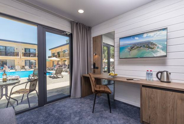 28 м2, балкон, спальня, диван. Расположен на отдельной закрытой территории, вдали от городской суеты в 10 метрах от моря в парковой зоне, в окружении вечнозеленой пицундской сосныSea Village Superior Swim UP/ Супериор (1 этаж)