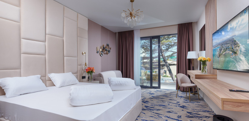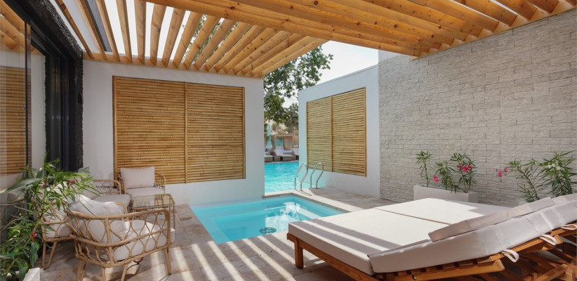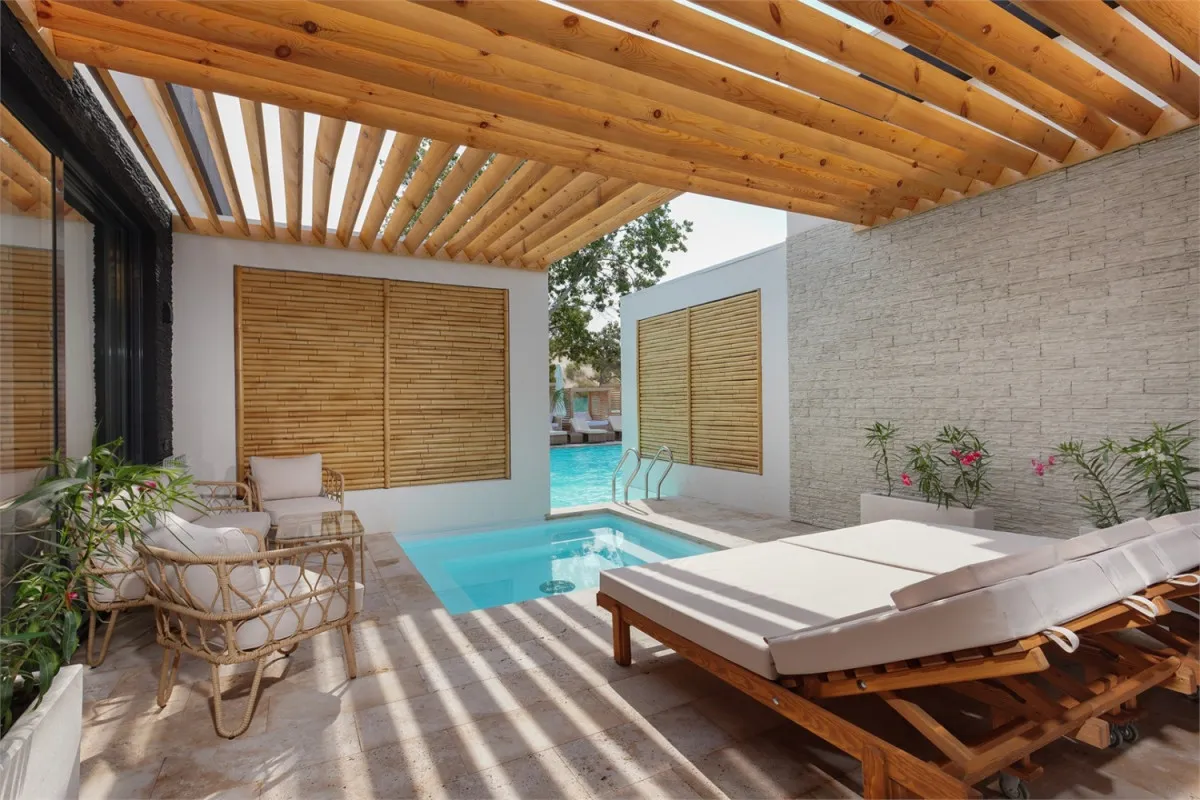 50 м2, просторная терраса, 2 спальни, диван, имеет собственный выход к бассейнуSea Village Suite Private Pool/ Сьют
