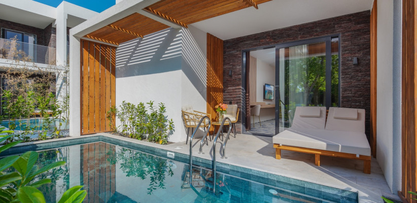 32 м2, терраса, частный подогреваемый бассейн, спальня, диван-кроватьSea Village Suite Swim UP/ Сьют
