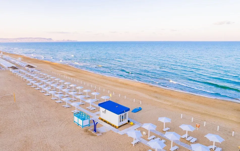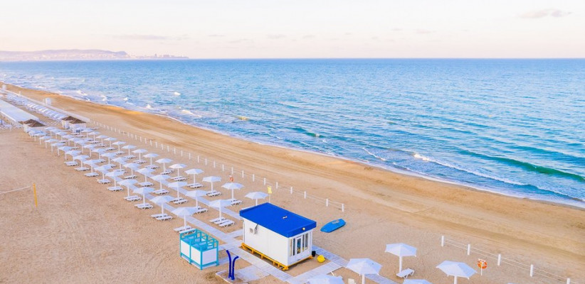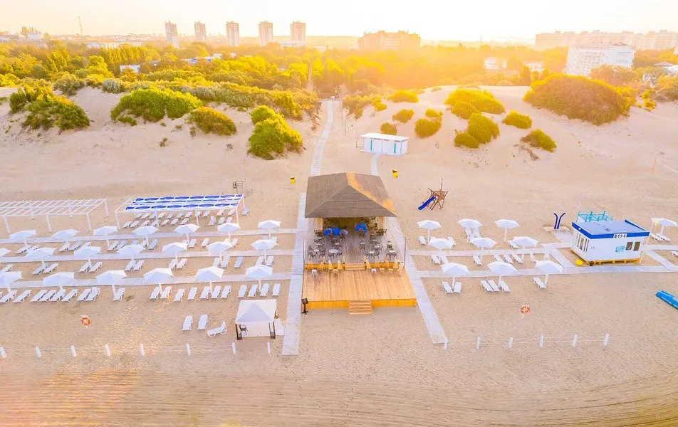 Собственный, песчаный, оборудованный, 1-я береговая линия.