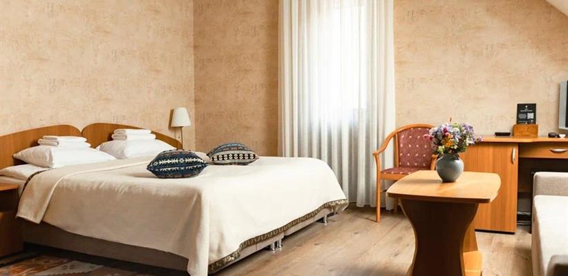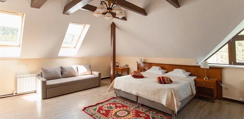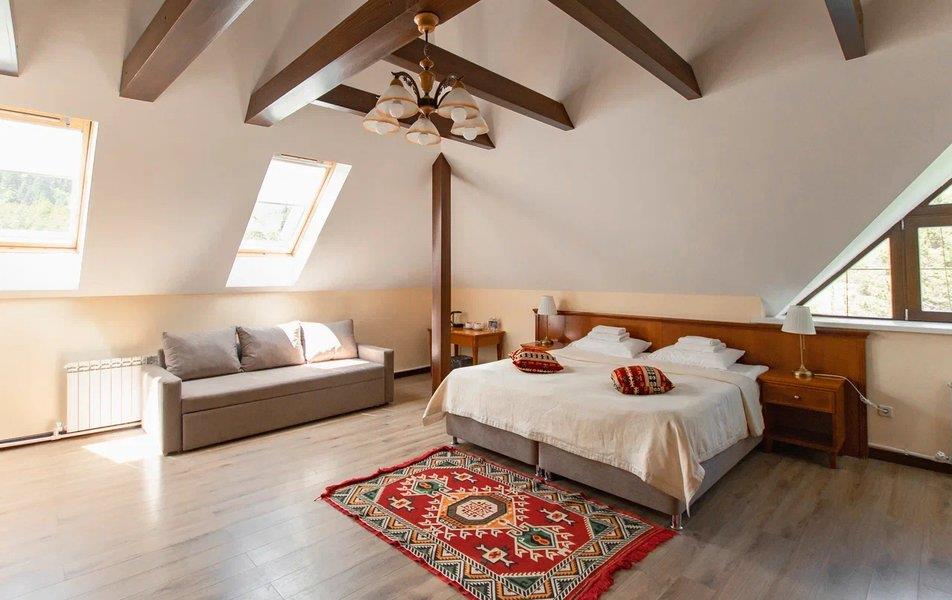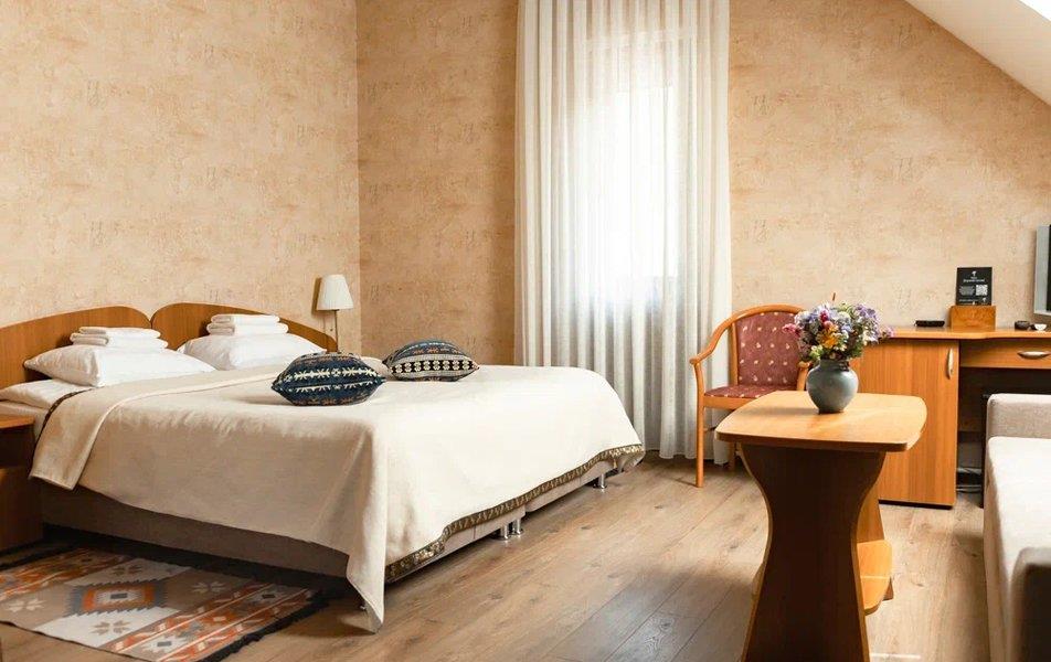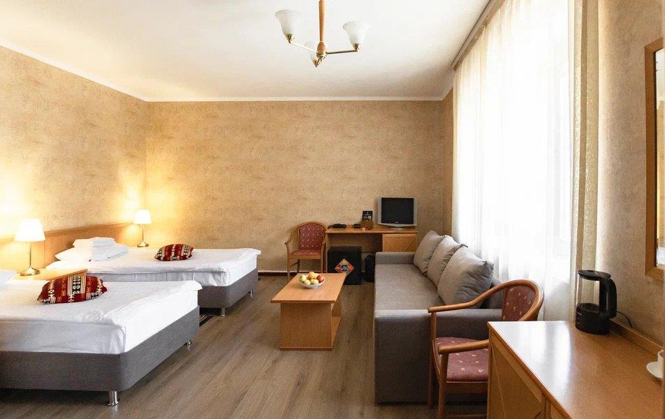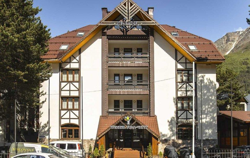 Отель Времена года Чегет расположен в живописном уголке Приэльбрусья, на Поляне Чегет – популярном горнолыжном курорте. Канатная дорога всего в 20 метрах от отеля, что очень удобно для любителей зимних видов спорта. Для гостей отеля Времена года Чегет предлагается SPA комплекс услуг: сауна, бассейн, зона отдыха и по запросу комплексный массаж. Бесплатный интернет Wi-Fi доступен на всей территории отеля. Путешественники на машине могут оставить автомобиль на охраняемой парковке на территории отеля при наличии свободного места.Гостей ждет домашнее радушие в совокупности с высоким качеством сервиса. Без питания – За дополнительную плату – производится в кафе «ZAMAN» и каминном баре, часы работы с 08:00 – 00:00, завтраки проходят с 8:00 до 11:00 Завтрак континентальный Бани и сауны: банный комплекс, сауна Бассейны: крытый, вода пресная, пользование бассейном Парковка: открытая охраняемая Рестораны и бары: бар, кафе СПА-центр Интернет: wi-fi в номерах, wi-fi на территории Дополнительно: скандинавская ходьба: экотропы Открытые площадки: горнолыжный склон, горнолыжный центр Прокат: кроватка-манеж Как добраться: Самолетом до аэропорта г. Нальчик, далее на маршрутке №536 до остановки «Тырныауз-Администрация», далее пересадка на маршрутку «Тырныауз-Терскол» двигаться до остановки «Поворот на Чегет», далее пройти пешком 550 м до отеля. Поездом до ж/д вокзала г. Нальчик, далее на маршрутке №18 до остановки «Колледж», далее на маршрутке №535 двигаться до остановки «Поворот на Чегет», далее пройти пешком 550 м до отеля. Рекомендуем заказывать трансфер.