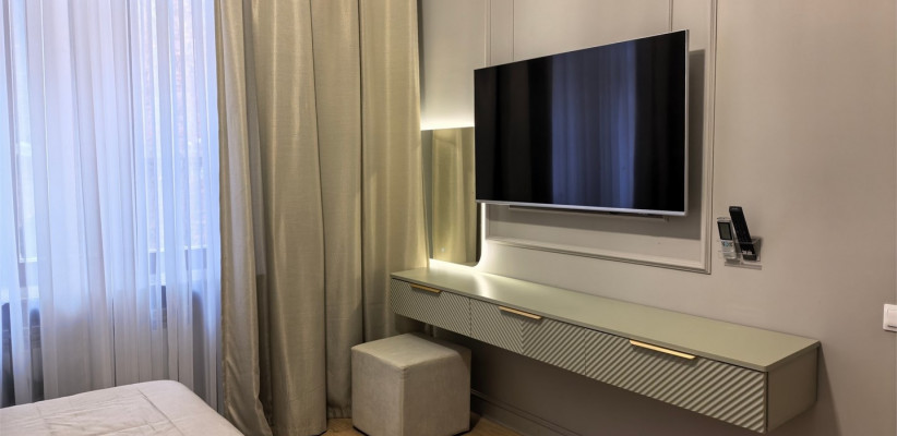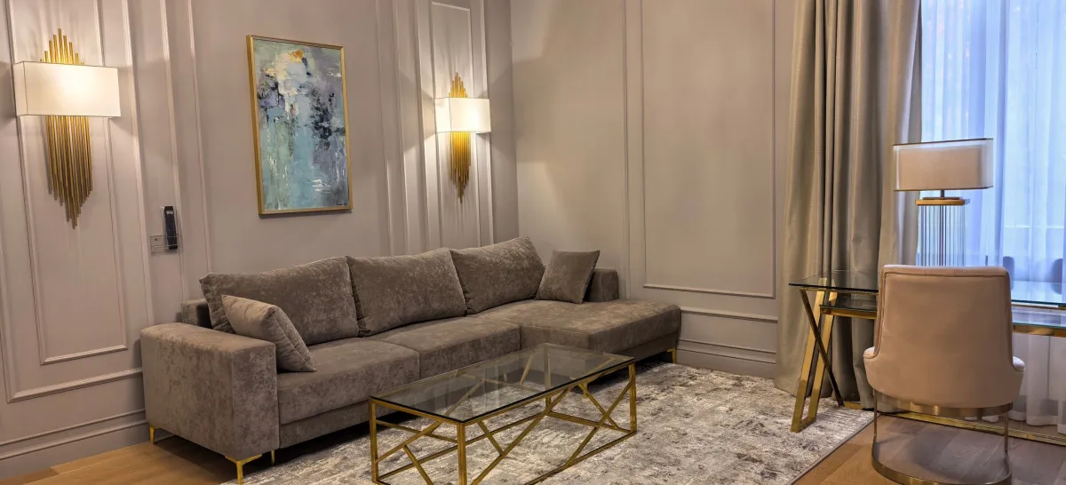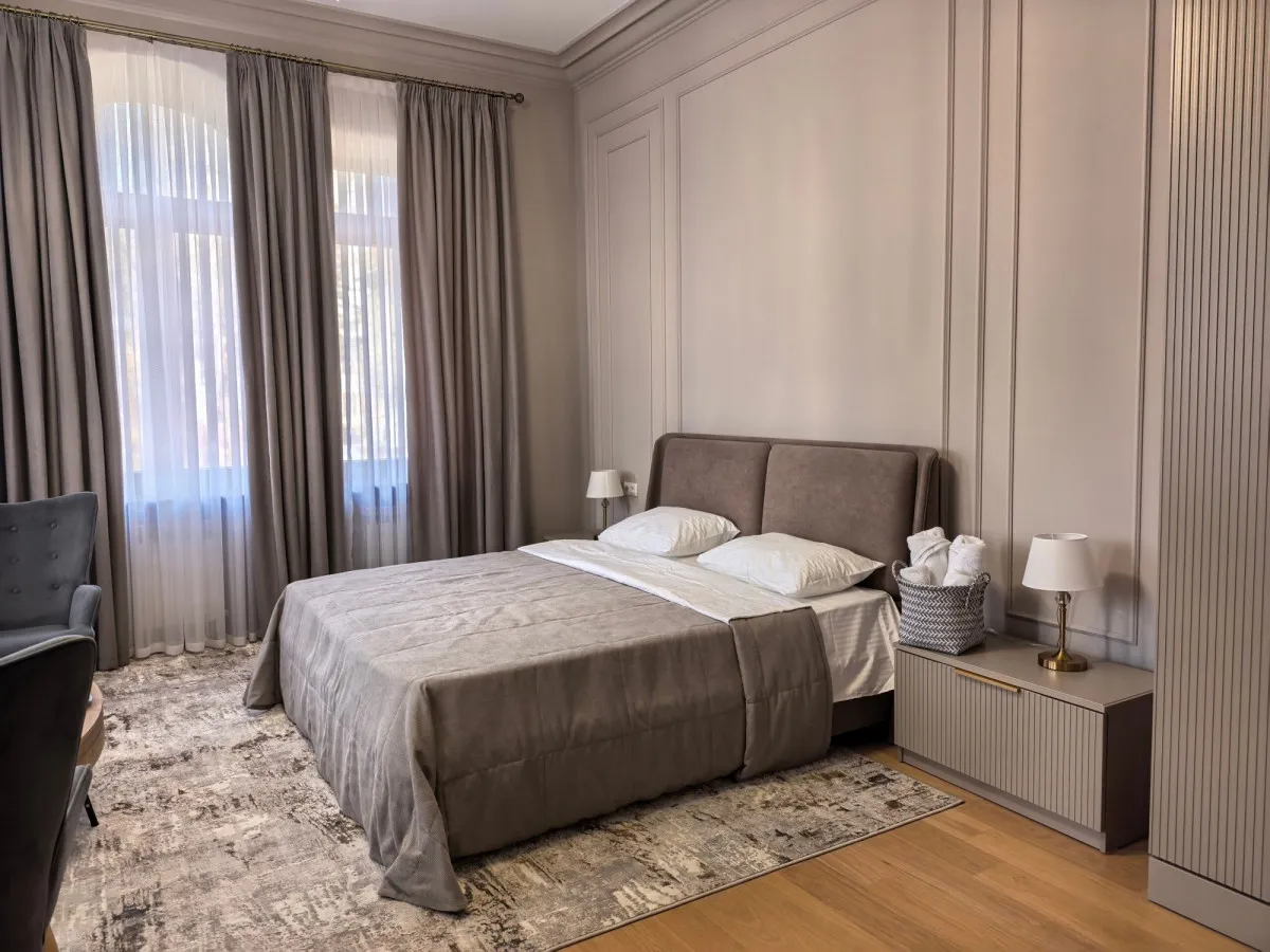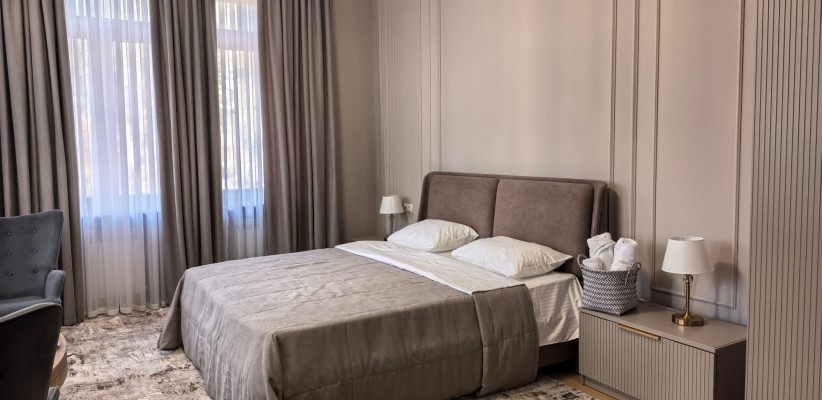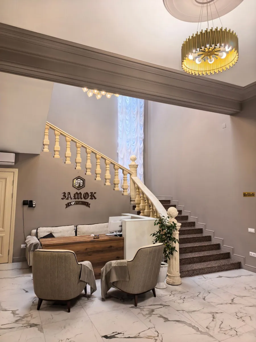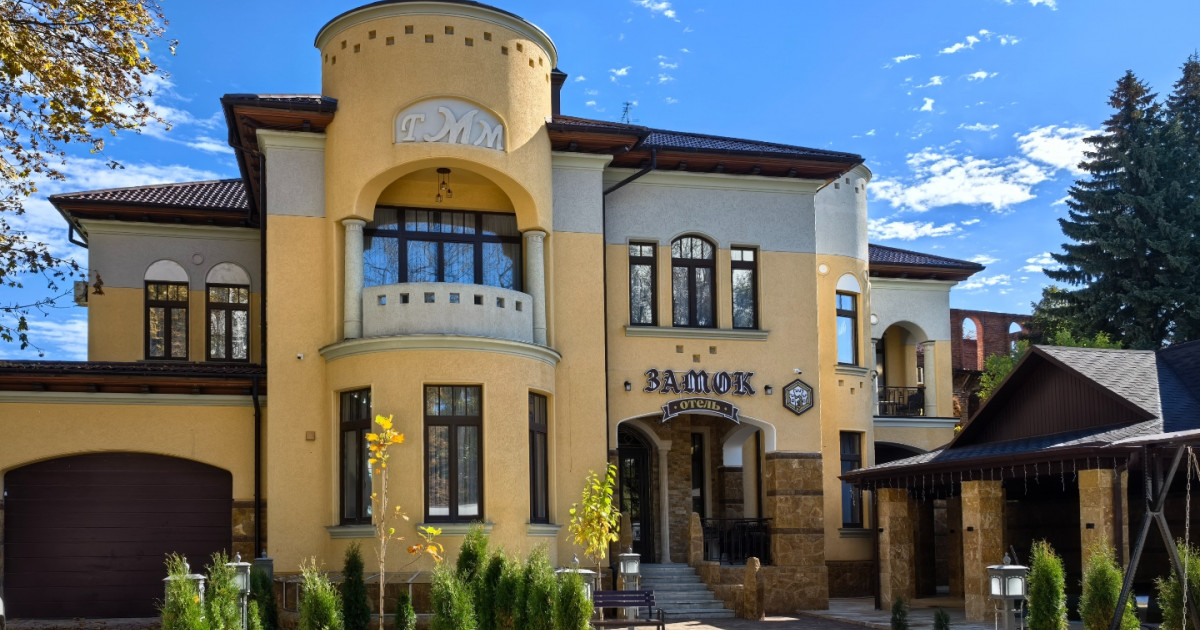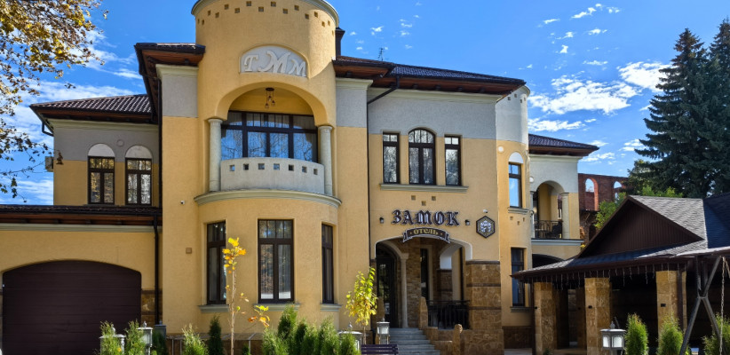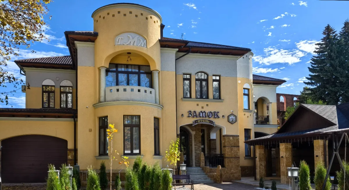 Архитектура здания выполнена в стиле средневекового замка, что придает гостинице особую атмосферу. Интерьеры напоминают уютное европейское поместье: здесь ощущается внимание к деталям – от мягкого освещения до изысканной текстильной отделки, создающих атмосферу уюта и благородной сдержанности.