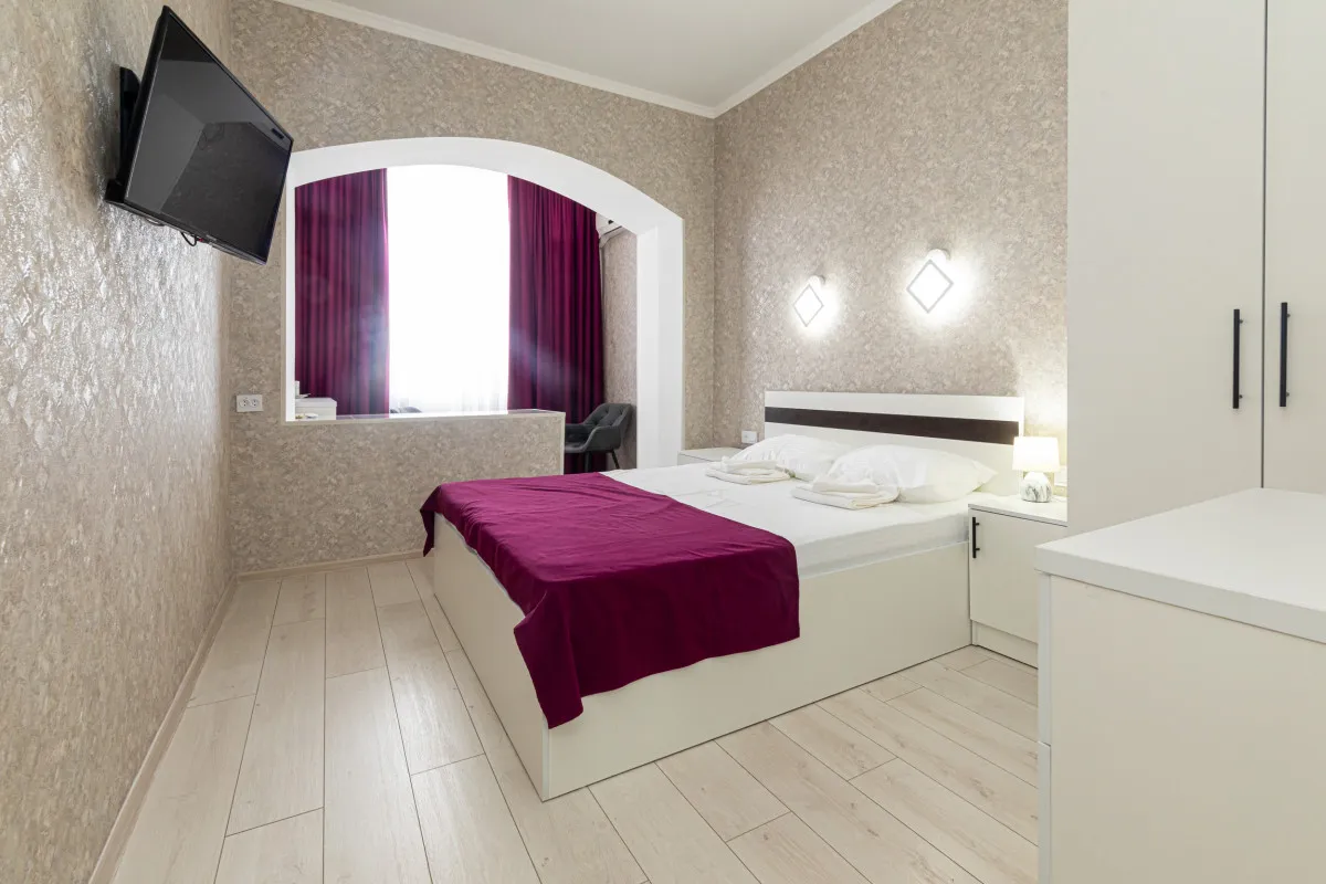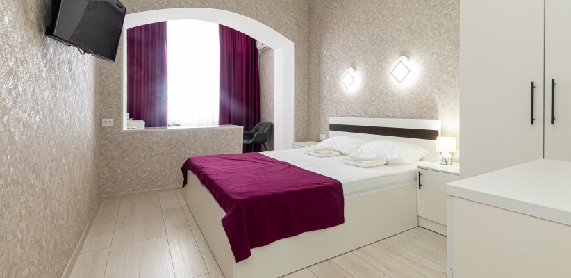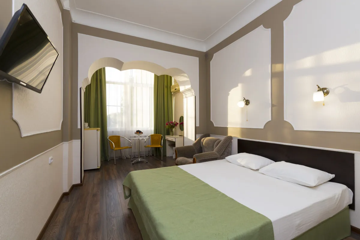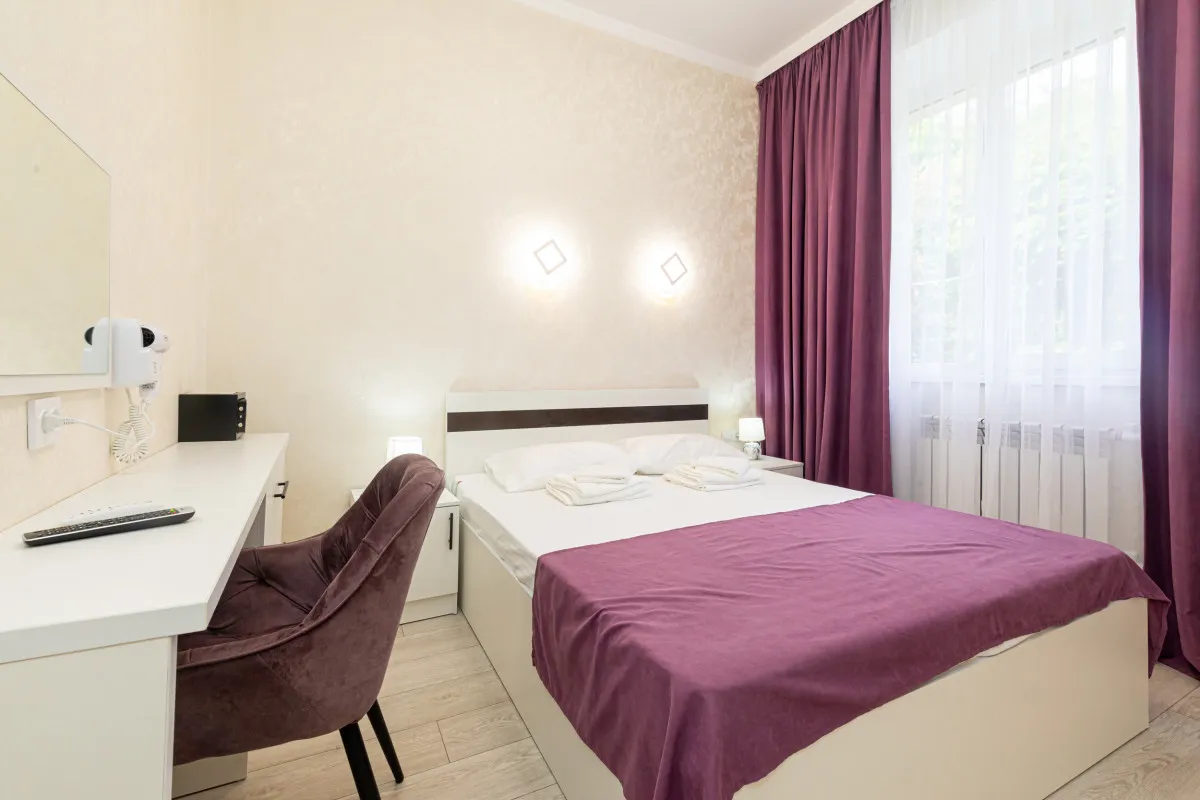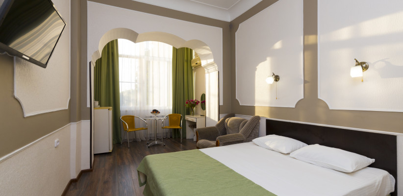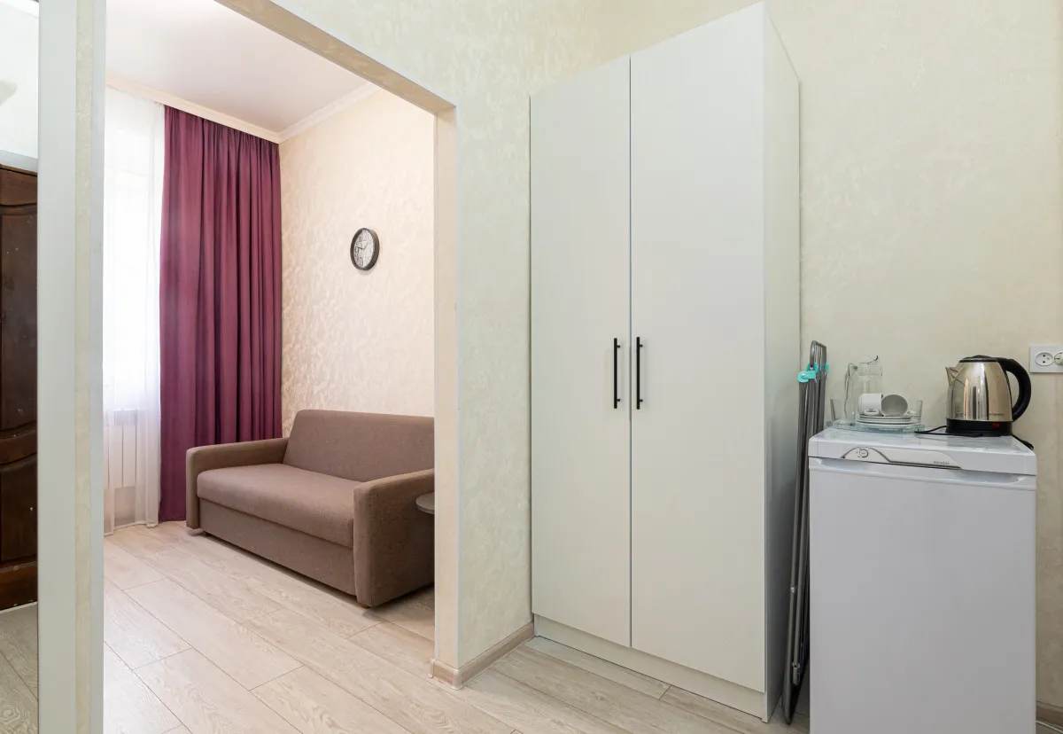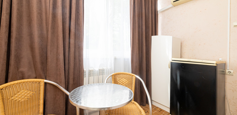 24 м2, 1 двуспальная кровать, дополнительные места: раскладной диван, количество гостей: 2 основных места + 3 дополнительныхОдноместный номер 3 категории (3К1м1к2) (корпус 2)
