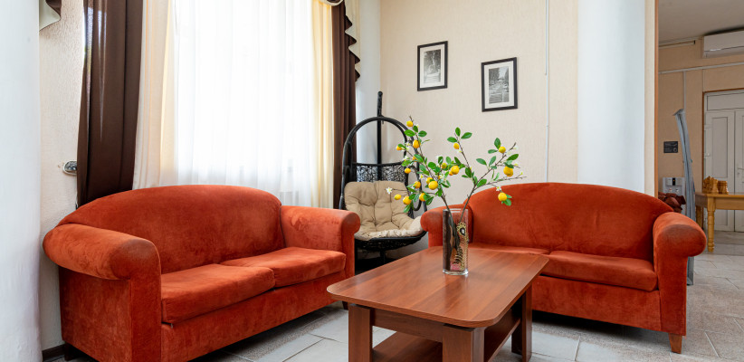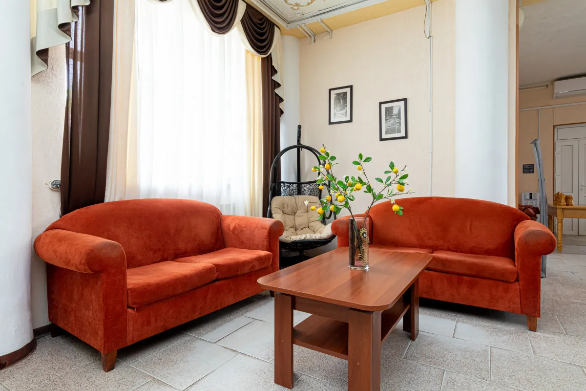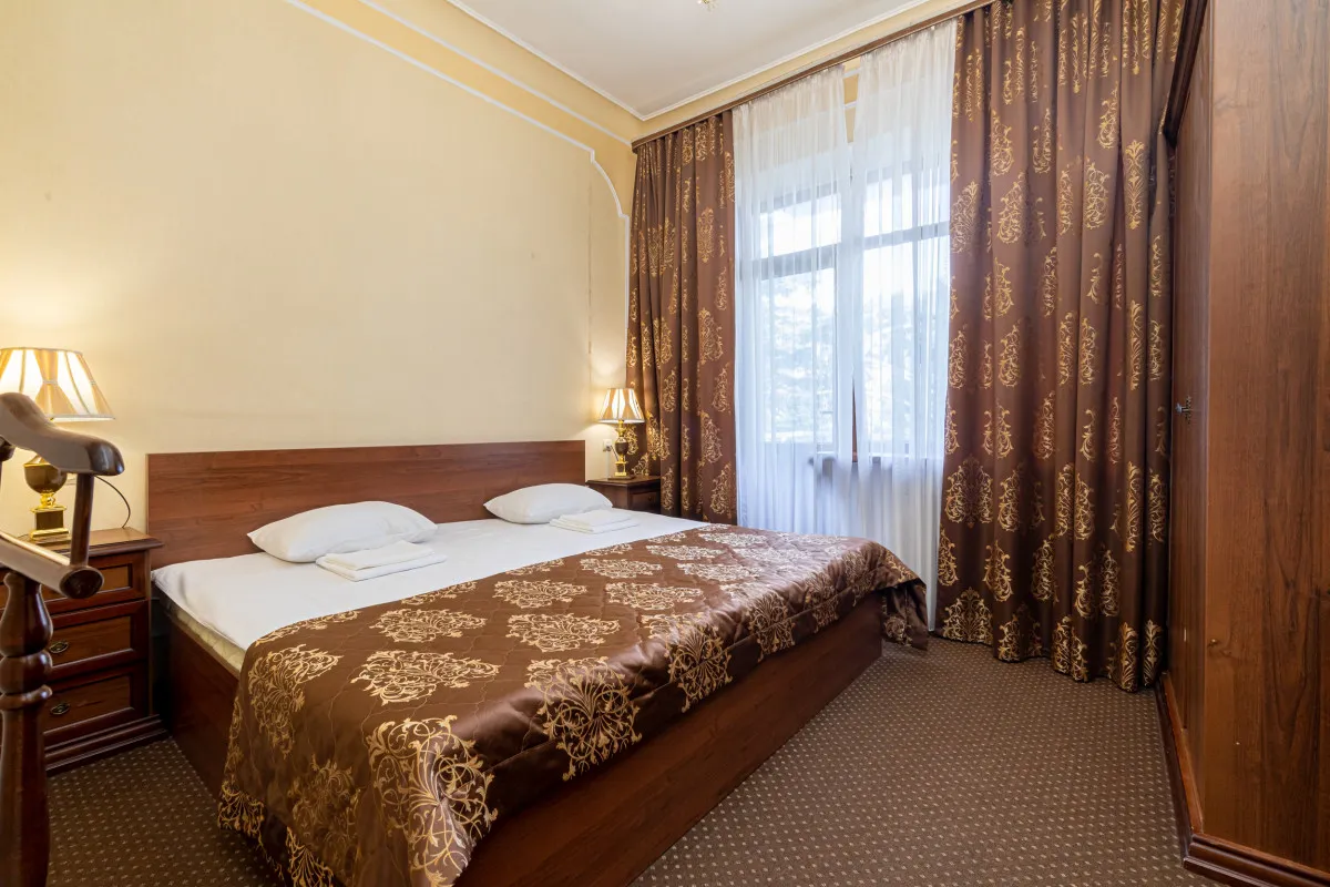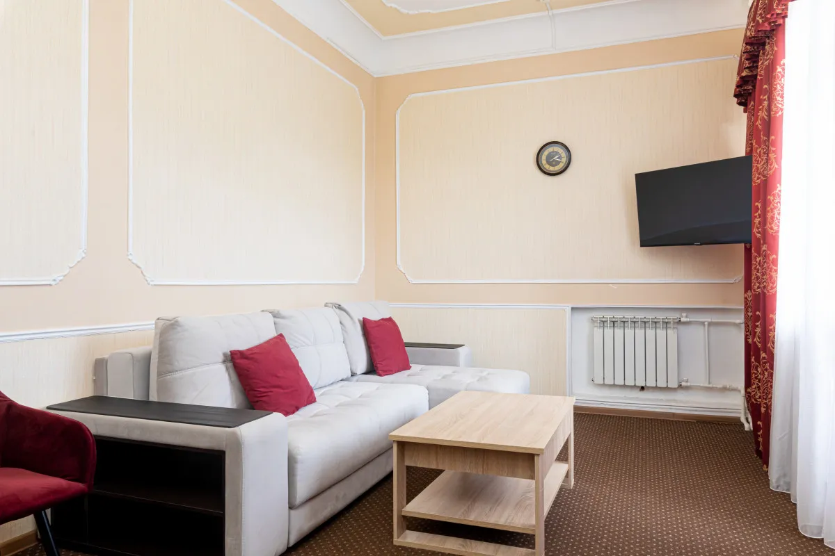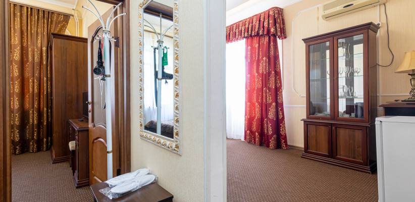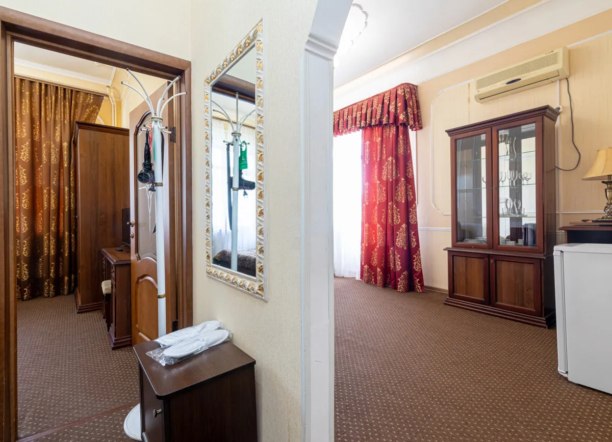 18 м2, 1 двуспальная кровать, дополнительные места: раскладной диван, количество гостей: 2 основных места + 2 дополнительныхЛюкс двухместный двухкомнатный (Л2м2к1) (корпус 1)