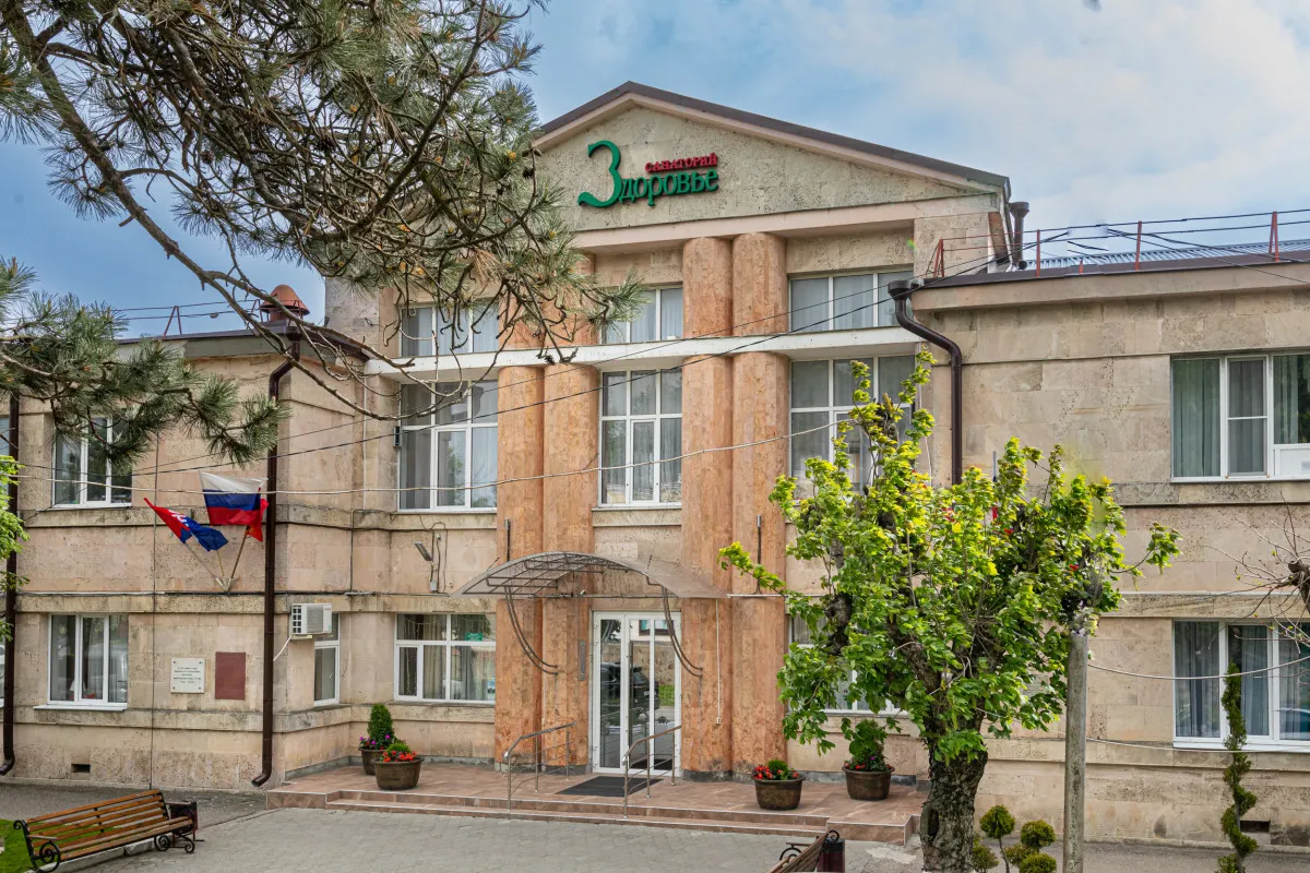 Санаторий «Здоровье» расположен в центре курортной зоны города Железноводска, в нескольких минутах ходьбы от источников минеральных вод «Смирновский» и «Славяновский», в непосредственной близости от входа в курортный парк.