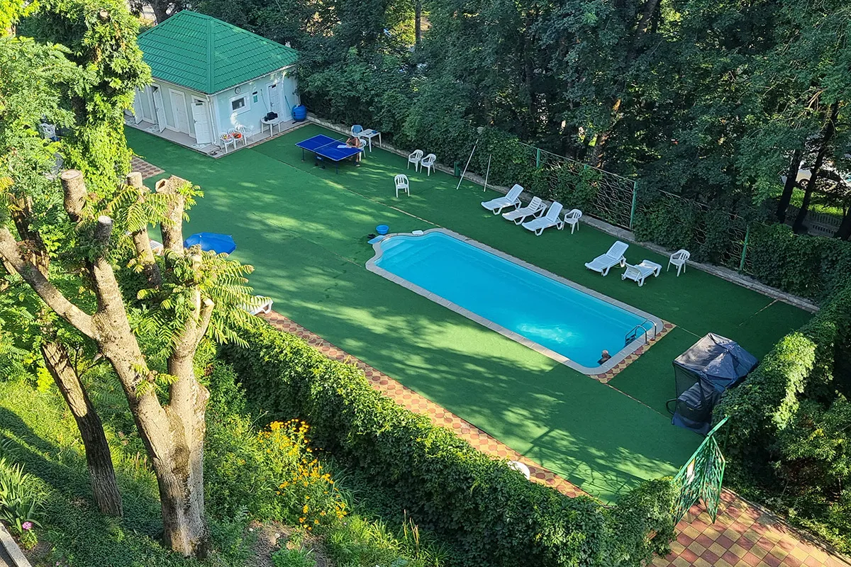 Санаторий состоит из двух отдельных корпусов, расположенных друг от друга через дорогу. Корпус № 1 – трехэтажное здание, в котором находятся номерной фонд, а также лечебно-диагностическая база, столовая и вся инфраструктура санатория. Корпус № 2 (экономичного уровня) – четырехэтажное здание (без лифта), которое находится на расстоянии около 300 м от корпуса № 1. На небольшой территории санатория имеется летний бассейн с открытой зоной отдыха.