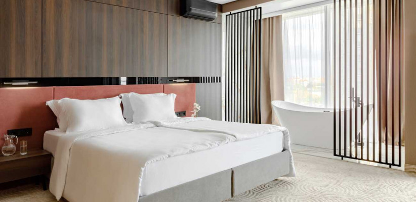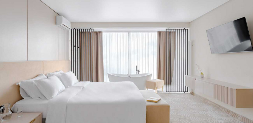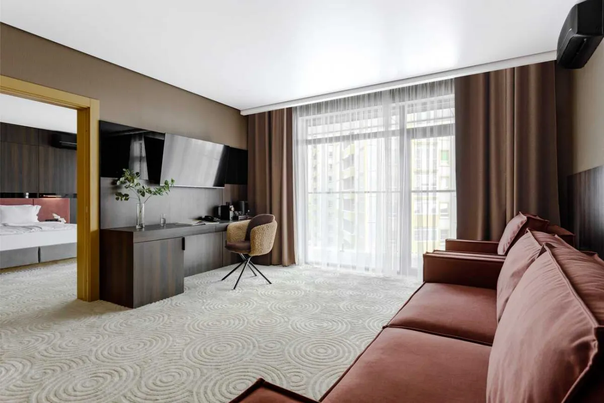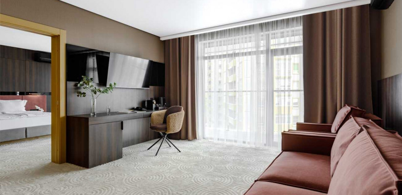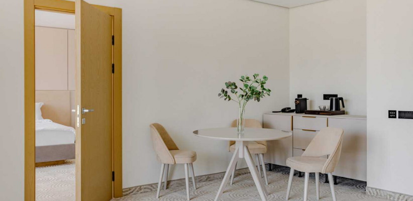 29 м2, балкон, двуспальная кровать. Дополнительное место – раскладное кресло. Количество гостей: 2 взрослых + 1 ребенокLuxe Premium En Suite 2-комнатный (7 этаж)