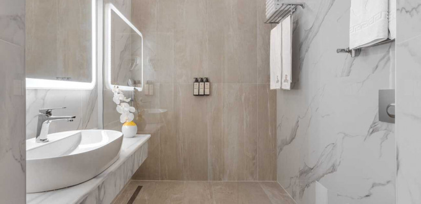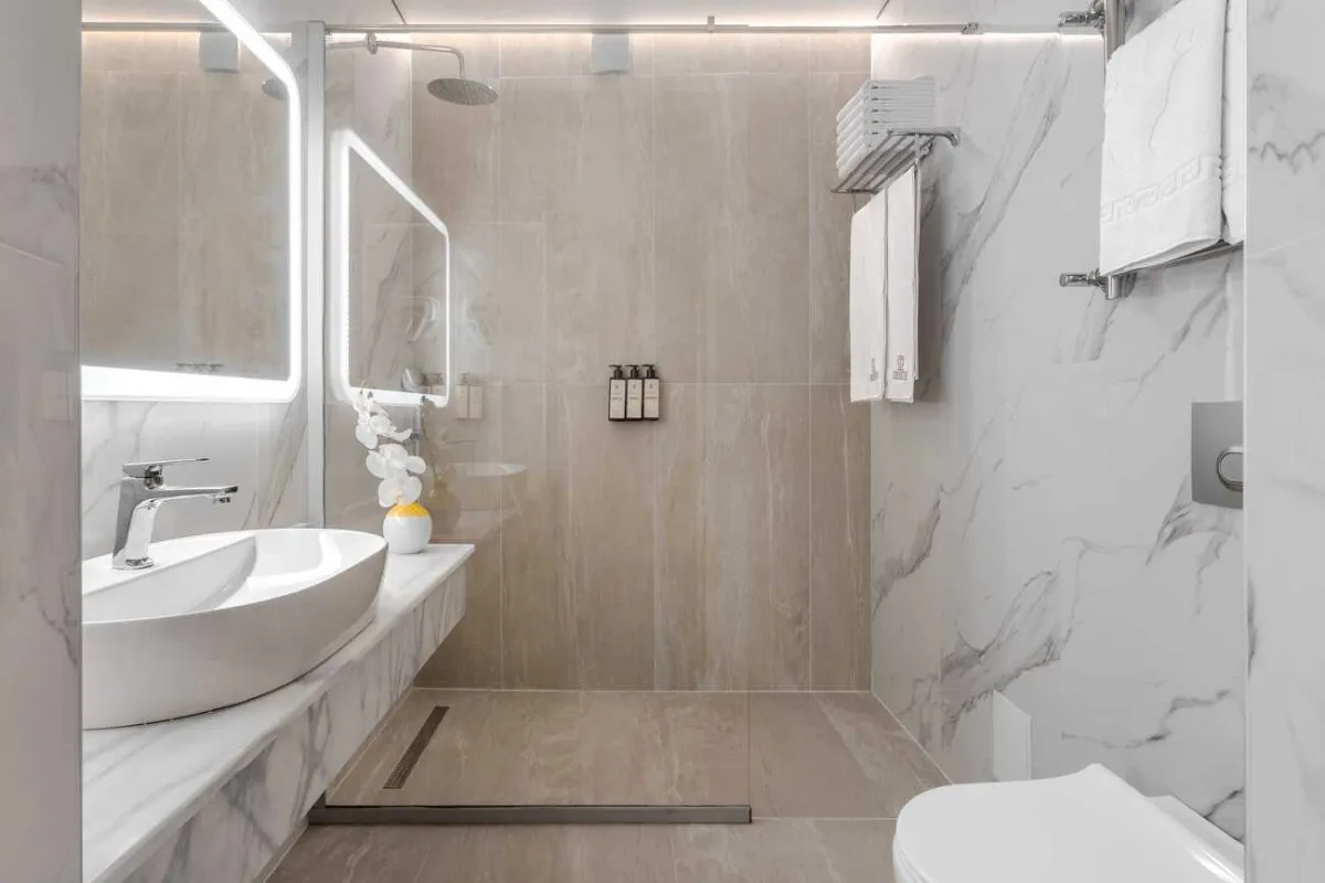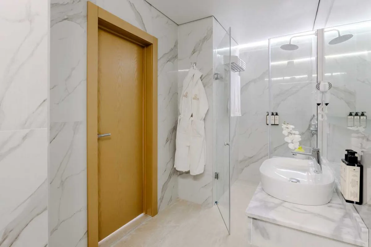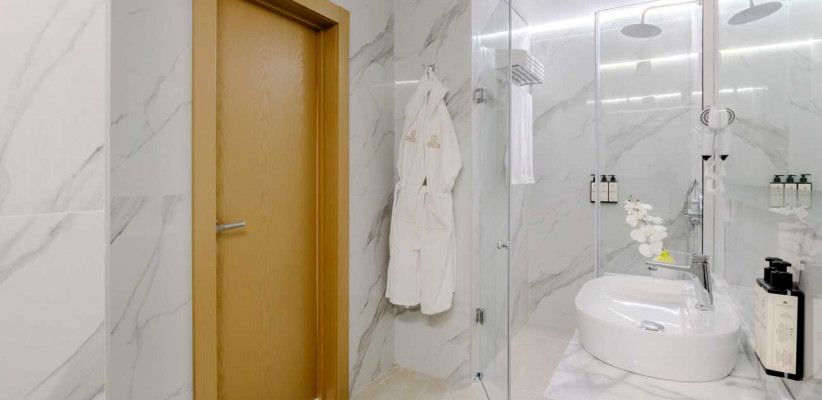 60 м2, балкон, спальня с двуспальной кроватью и отдельно стоящей ванной и ванной комнатой, гостиная с диваном и гостевой ванной комнатой (душ, беде), два телевизора. Дополнительное место – кресло-кровать. Количество гостей: 4 взрослых + 1 ребенокLuxe Presidential En Suite 3-комнатный