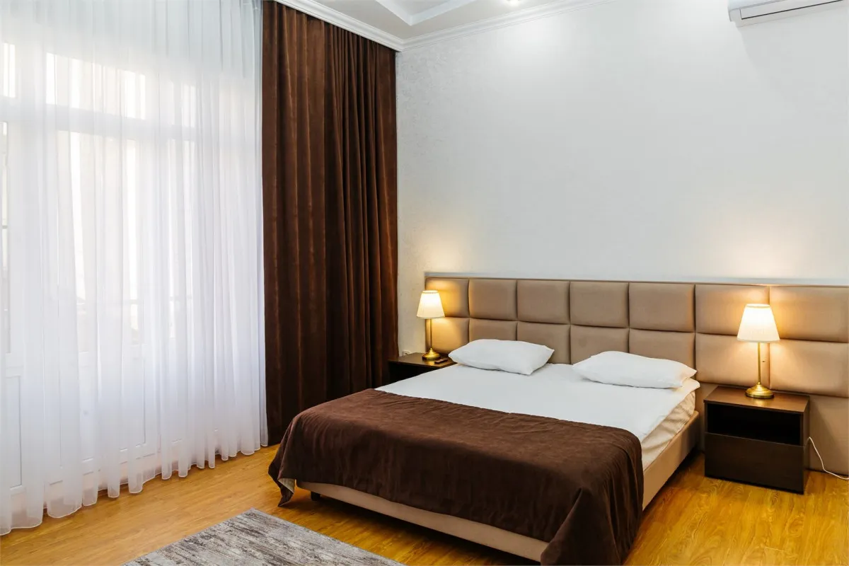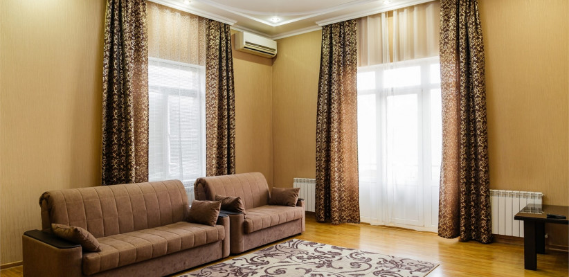 70 м2, двуспальная кровать размера «king-size», отдельная гостиная с диваном-кроватью, балкон с видом на город, на горы или во двор. Количество гостей: 5Апартаменты