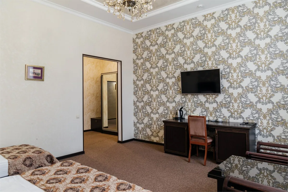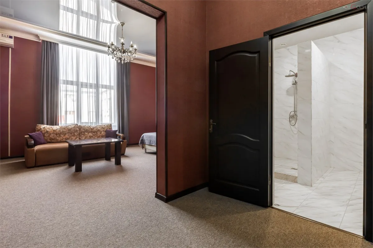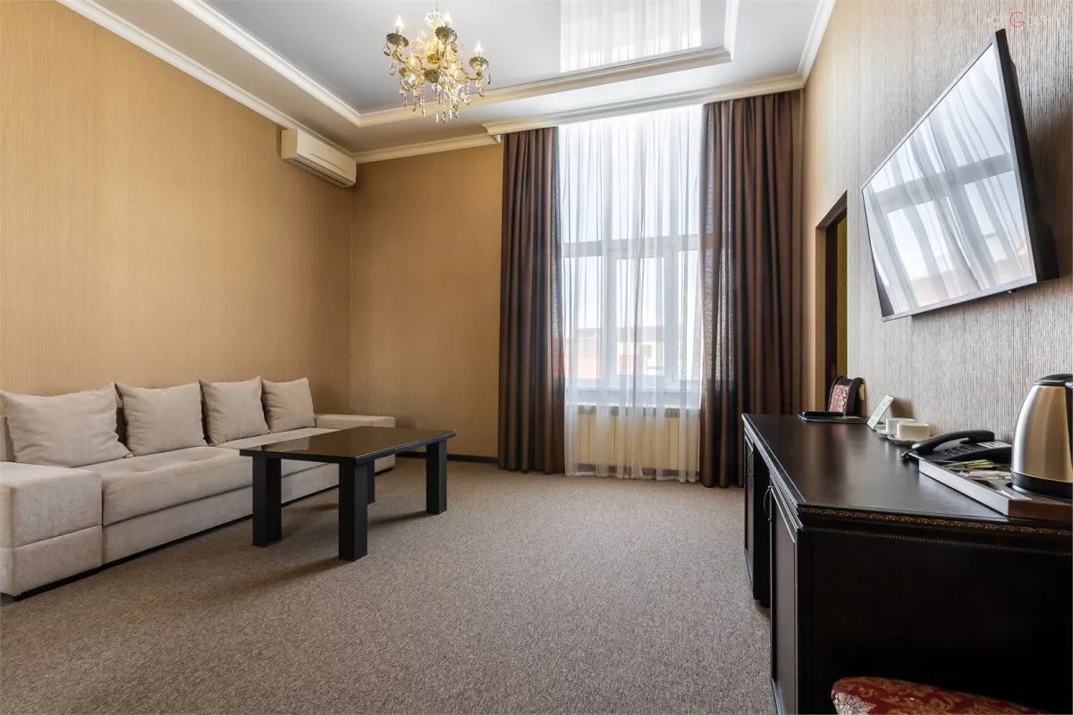 50 м2, двуспальная кровать размера «king-size», отдельная гостиная с диваном-кроватью, вид на город или во двор. Количество гостей: 3Семейный полулюкс