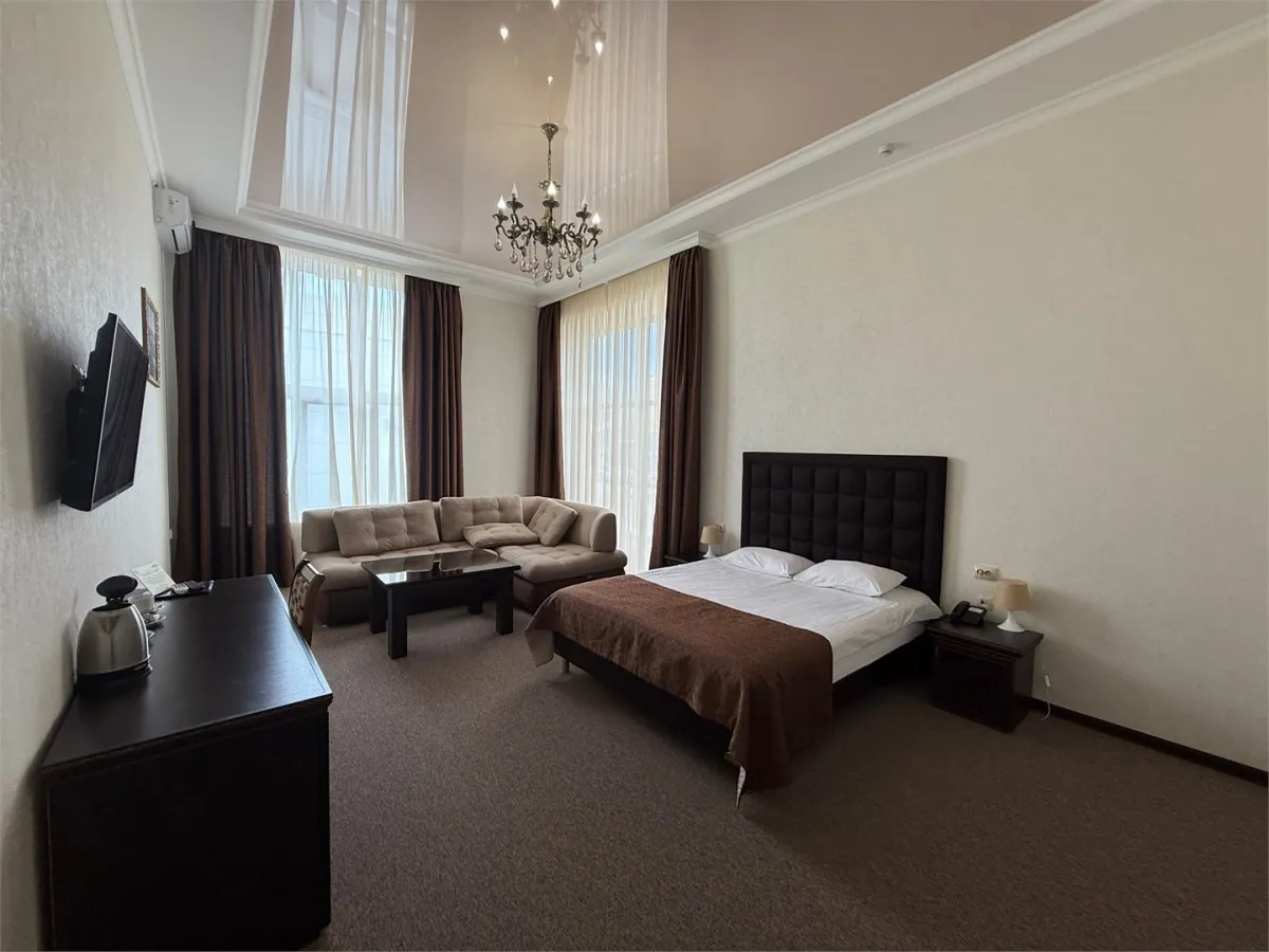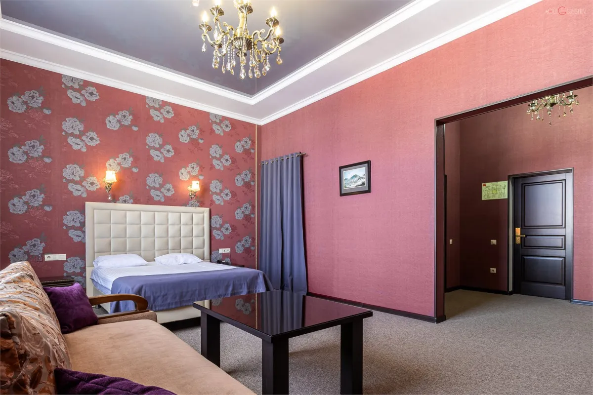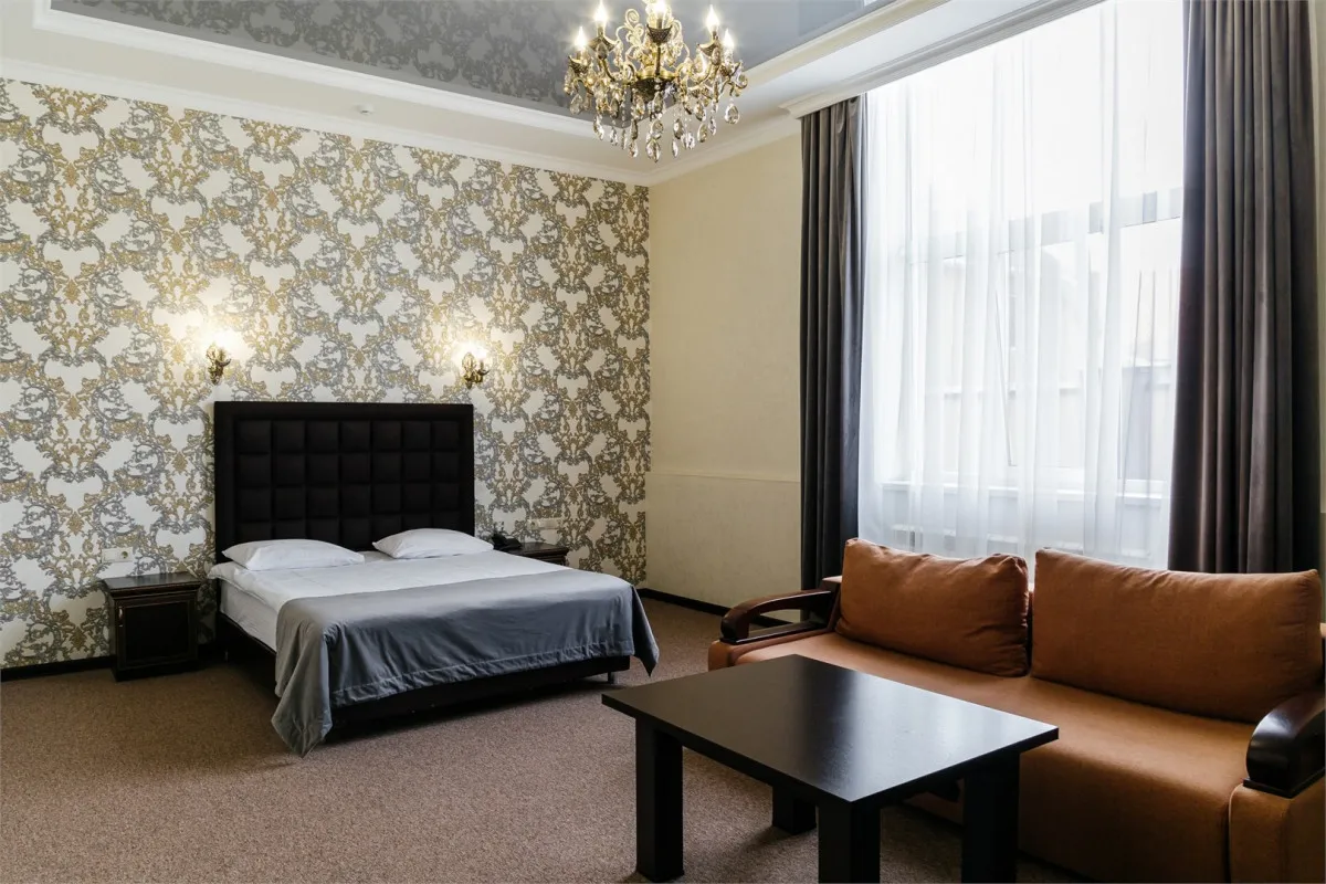 45 м2, двуспальная кровать размера «king-size», зона отдыха с диваном-кроватью, вид на город или во двор. Количество гостей: 4Люкс