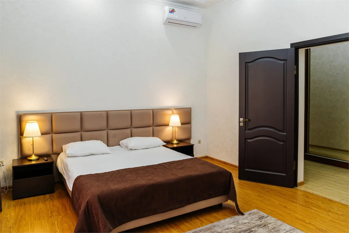 30 м2, двуспальная кровать размера «king-size», зона отдыха, вид на город или во двор. Количество гостей: 2Делюкс