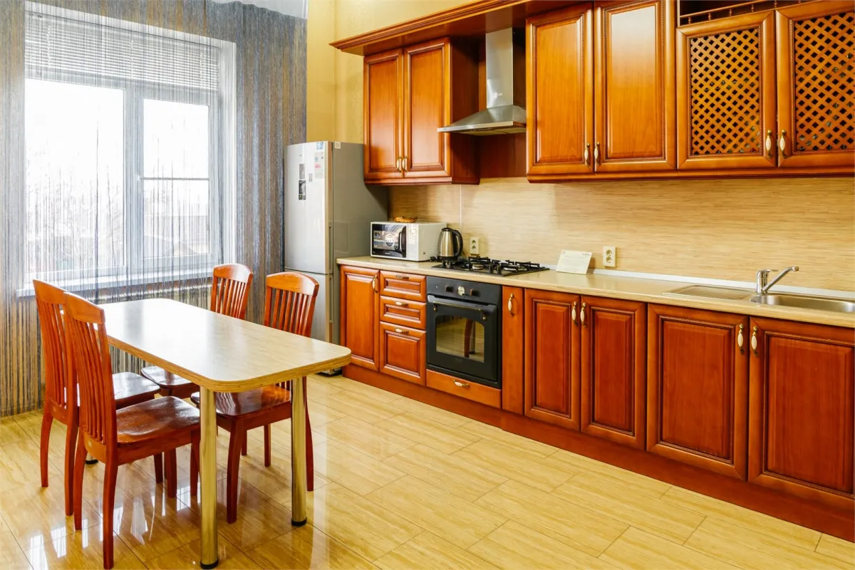 80 м2, двуспальная кровать размера «king-size», отдельная гостиная с диваном-кроватью, кухня, вид на город или во двор. Количество гостей: 5