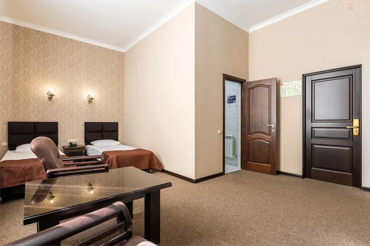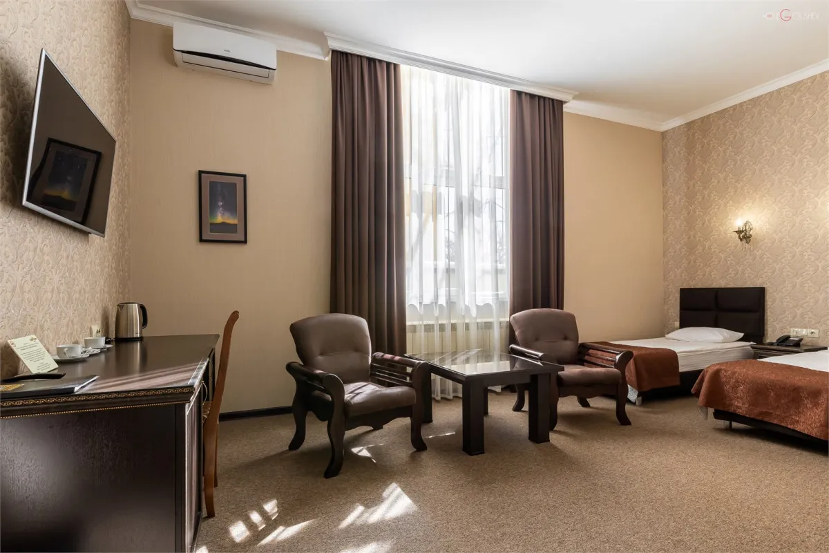 40 м2, две односпальные кровати, зона отдыха, вид на город или во двор. Количество гостей: 2Улучшенный трехместный номер