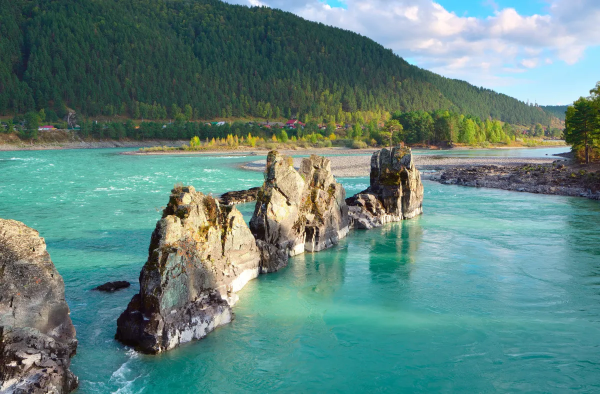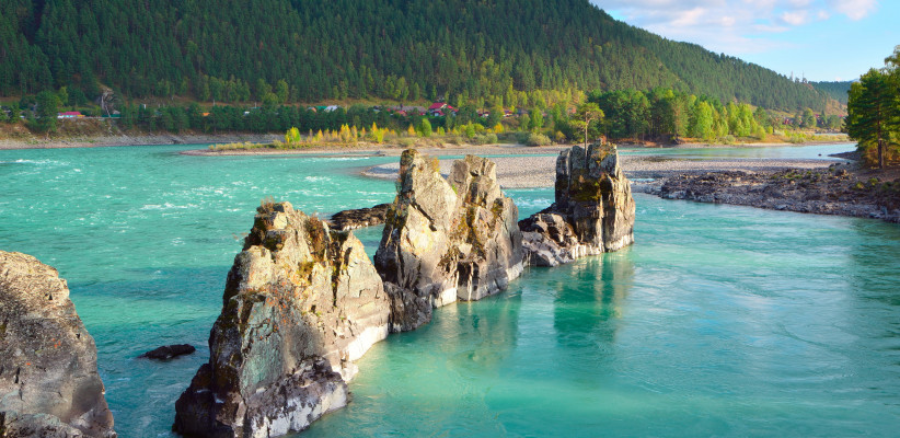 Туристы увидят уникальные скалы «Зубы Дракона». Легендарные скалы-исполины, чьи острые пики, словно клыки древнего чудовища, вонзились в небо над Катунью. Фотогеничный символ мощи алтайской природы.