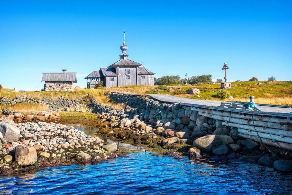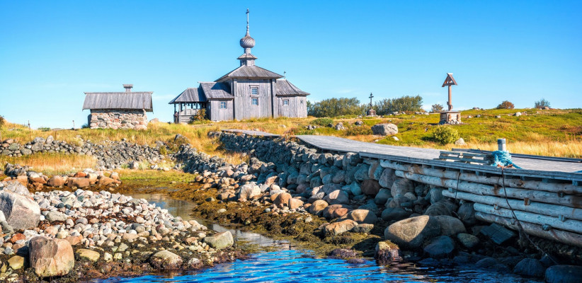 Морская прогулка на катере до Большого Заяцкого острова. Экскурсанты посетят крупнейшее языческое святилище II-I тысячелетий до нашей эры, увидят каменные лабиринты, комплекс культовых и погребальных сооружений, первую в России каменную гавань, памятники Андреевского скита.