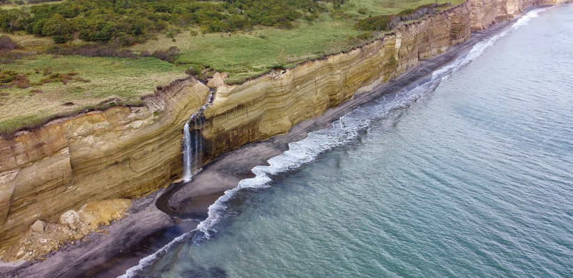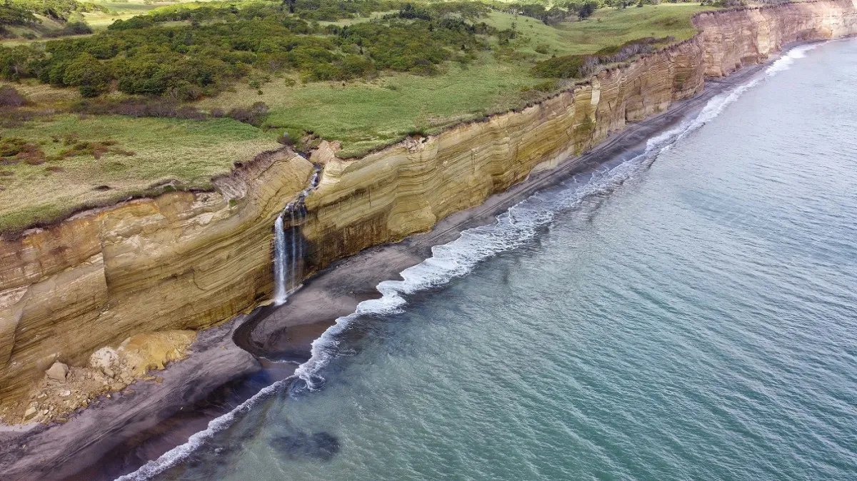 Головнинский клиф – это длинная стена с водопадами, расположенная на юго-восточной части острова Кунашир, омываемая Тихим океаном. Это одно из самых интересных и запоминающихся мест острова. Добраться сюда можно только по береговой полосе во время отлива. По пути с большой вероятностью можно встретить редких краснокнижных птиц, таких как японский журавль, белоплечий орлан