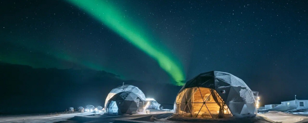 Преодолеваем живописный хребет Муста-Тунтури, любуемся водопадом. По желанию возможен показ легендарной Швабской дороги времен военных лет. Прибытие в уютные экосферы арктик-отеля и долгожданный ужин у камина.
