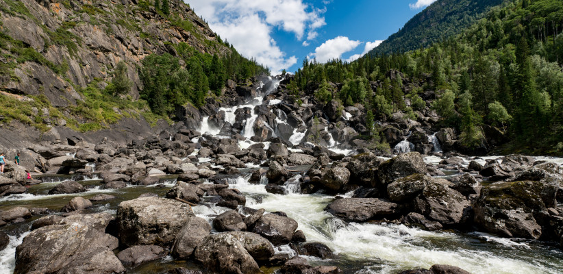 Для тех, кто жаждет ярких впечатлений – освежающий моторафтинг по Катуни с посещением Камышлинского водопада – два мощных каскада на реке Камышла высотой 12 метров. Вода здесь словно живое серебро, переливается в лучах солнца и создает уникальную атмосферу, наполненную энергией и восторгом. Моторафтинг, как и любой рафтинг, позволяет посмотреть на берега реки и горы с необычного ракурса, получить эмоциональный заряд катунских брызг.