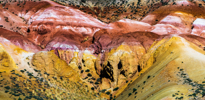 Экскурсия в Кызыл-Чин, известного как «Алтайский Марс» – это крутые каньоны, цвет которых по всей долине варьируется от бледно-желтого до насыщенно бордового. Выходы разноцветных глин на поверхность создают ощущение другой планеты.
