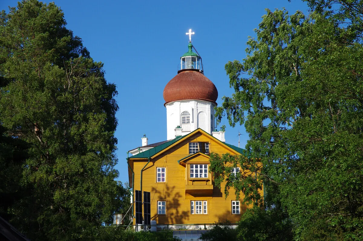 Посетим самую высокую точку острова – гору Секирную. На ней расположен Свято-Вознесенский скит с уникальной церковью, в куполе которой оборудован маяк, указывающий путь рыбакам и мореплавателям. Рядом с церковью посмотрим на окрестности острова со смотровой площадки, перед нами откроется вид на Сосновую губу, постройки Савватиевского скита и густые леса. В лагерные времена здесь располагался штрафной изолятор, проводились массовые расстрелы заключенных. Во второй части экскурсии заедем в живописный ботанический сад на территории Макарьевской пустыни. Здесь, всего в 160 метрах от полярного круга, выращивают множество видов растений, даже экзотических.