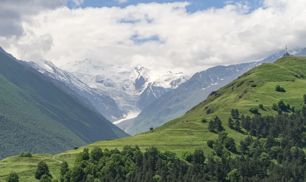 С Транскама свернем к Сказскому леднику: на канатно-кресельном подъемнике доберемся до вершин, увидим ледяной грот, откуда стремительно вырывается река Сказдон, насладимся видами горной стихии.