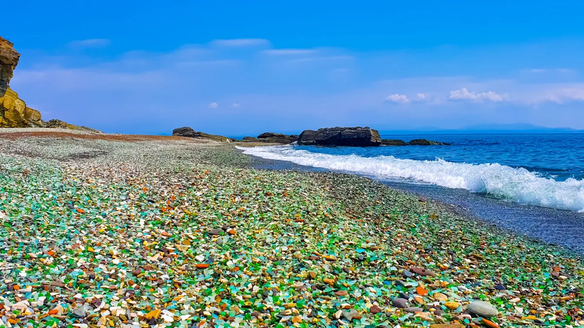17:30–18:00 Посещение знаменитой бухты Стеклянная – места, входящего в топ-10 обязательных к посещению. Пляж выглядит так, как будто выполнен из разноцветной мозаики, благодаря множеству небольших стеклянных осколков, отшлифованных со временем морем. Бухта небольшая, но уютная, обрамлена живописными невысокими скалами вулканического происхождения. Разноцветный пляж, будто усеянный леденцами, не оставит равнодушными ни детей, ни взрослых!