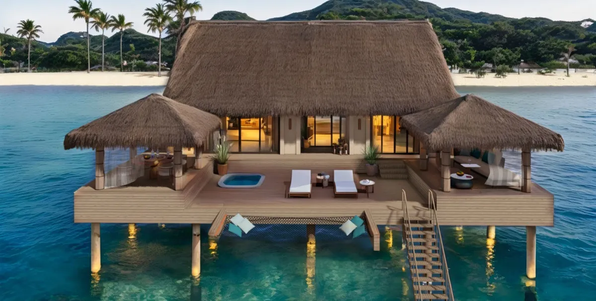 Курорт известен своими изысканными виллами – от уединенных над водой до просторных с собственными бассейнами и видами на море. Каждая вилла предлагает полную приватность, современное оснащение и персональное обслуживание. Для гостей предусмотрен доступ в клубное пространство с частным бассейном и рестораном, предназначенным исключительно для проживающих в виллах.