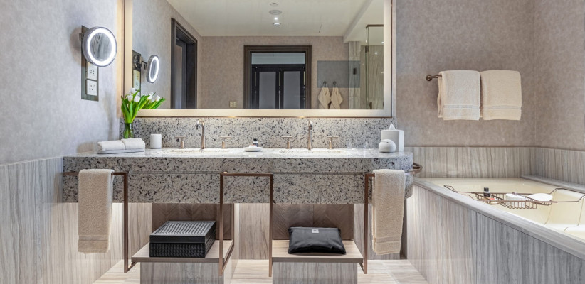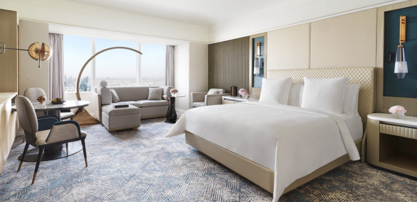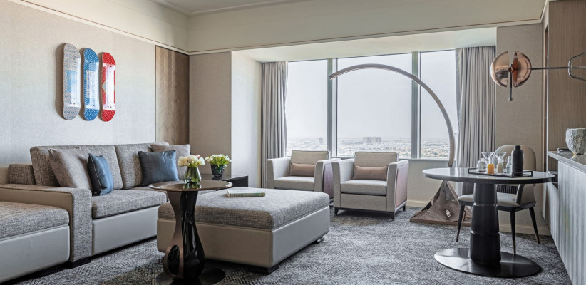 145 м2, 38–42 этажи, вид на город. Одна кровать king-size, одна раскладная кровать или одна детская кровать. Возможно объединение смежных номеров. Максимальное количество гостей: 3 взрослых или 2 взрослых и 1 ребенок.