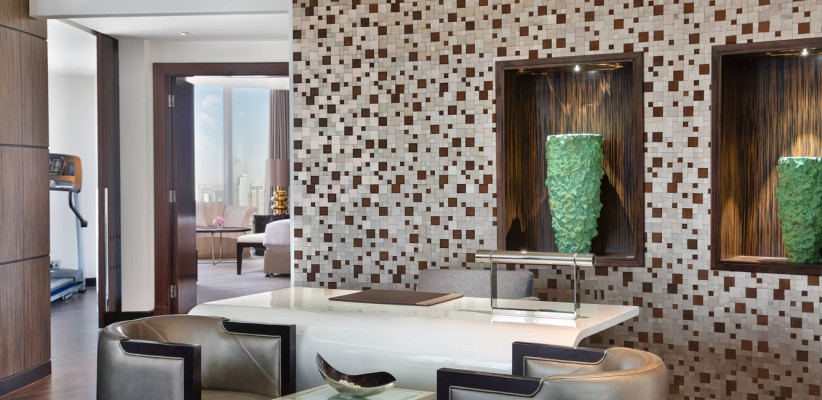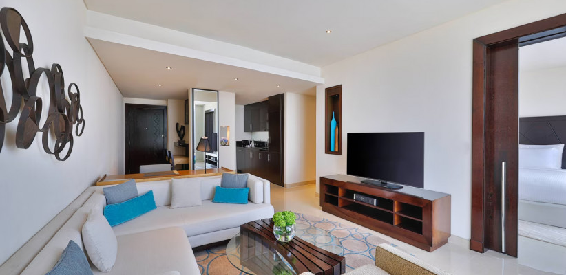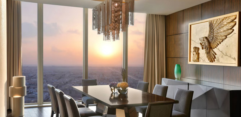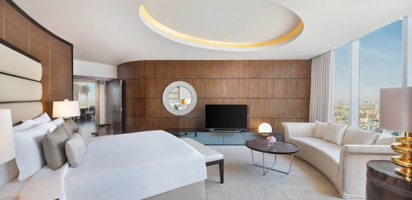 121 м2, вид на город, двуспальная кровать, гостиная с обеденной зоной, 2 ванные комнаты. Доступ в клубный лаунджBurj Rafal Suite 3-bedroom
