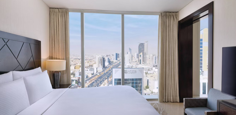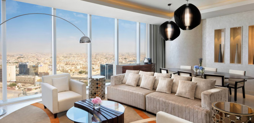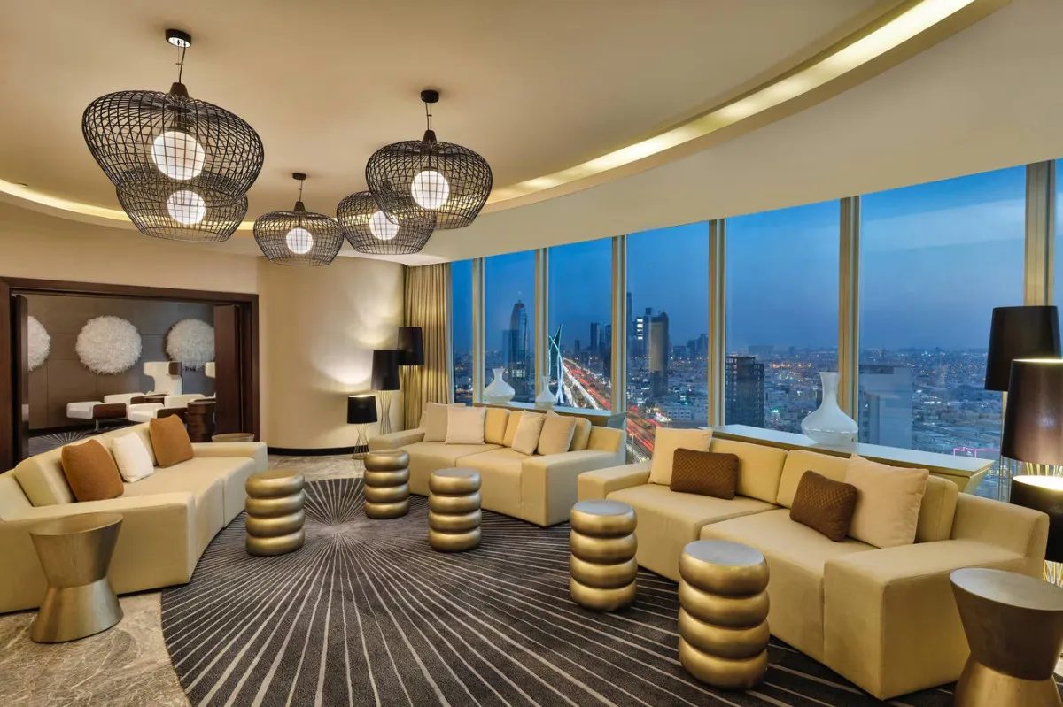 Отель Jw Marriott Riyadh 5* расположен в центре нового коммерческого и делового района Эр-Рияда, в 27 км от международного аэропорта имени короля Халида. Панорамные виды, открывающиеся из номеров 70-этажного небоскреба, впечатляют, и чем выше – тем больше. Кроме головокружительных панорам, к услугам постояльцев: SPA-центр, принимающий как мужчин, так и женщин, тренажерный зал – конечно же, с видом на Эр-Рияд, 27 высокотехнологичных конференц-залов, представительский лаундж, рестораны, кафе и сигарный салон, предлагающий богатый выбор эксклюзивных сигар.