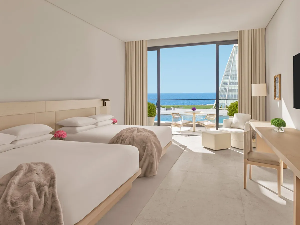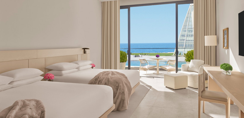 60 м2, вид на море, кровать размера gueen-size или две раздельные кроватиDeluxe King Sea View
