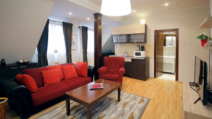 - Apartment Deluxe47 м2, спальня с двуспальной кроватью (200 х 180 см), гостиная, 2 ванные комнаты, джакузи, кофе-автомат, чайник, максимальное количество гостей: 2