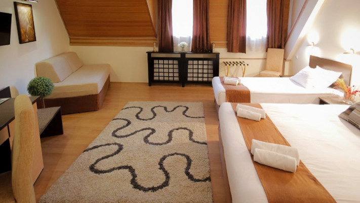 - Family Room33-37 м2, две комнаты, двуспальная кровать, односпальная кровать, 2 раскладных дивана Номера Deluxe, максимальное количество гостей: 5