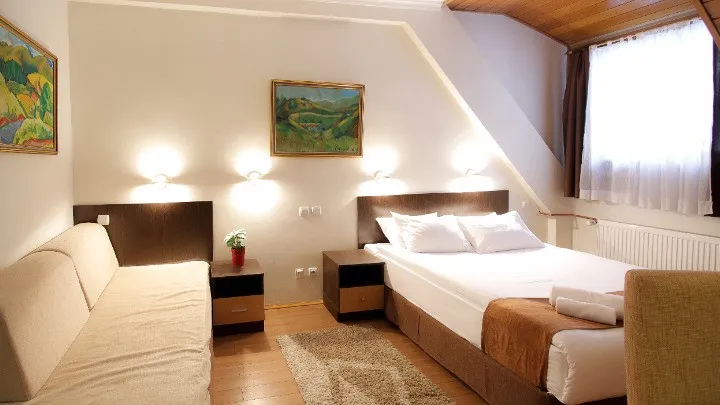 Отель Junior находится в поселке Брзече в 400 метров от подъемника Бела Река и в 18 км от горнолыжного центра Копаоник. Поселок расположен на высоте 1070 м. Отель занимает площадь около 8 га, на которой расположены спортивные площадки, собственный горнолыжный склон 400 м для новичков и детей, трасса для сноу-тюбинга. Идеален для проведения спортивных сборов, детских и юношеских лагерей, корпоративных мероприятий. Отель находится в 900м от нового гондольного подъемника, который доставляет лыжников к станции «Мали Караман», откуда есть доступ к трассам 7, 8, 9, 10 и 14.