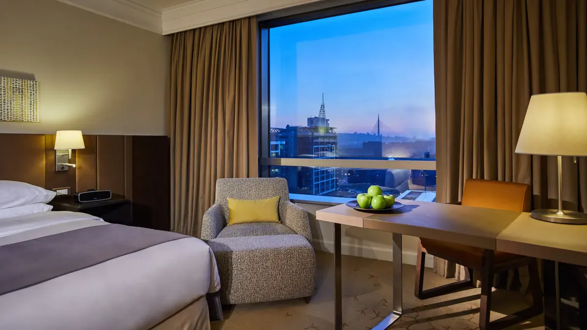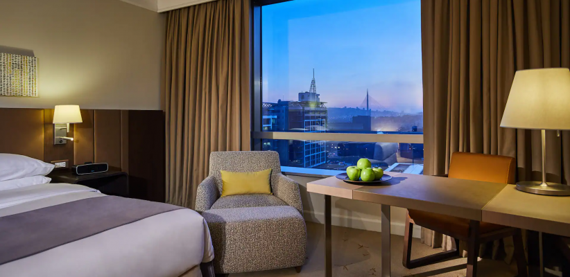 Hyatt Regency Belgrade – элегантный отель в деловом районе Нови-Београд, сочетающий современный стиль, спокойную атмосферу и высокий уровень сервиса. Отель расположен рядом с крупными торговыми центрами, офисами и основными городскими достопримечательностями, предлагая гостям удобство и уединение одновременно. Внутренний зеленый дворик и водные элементы создают ощущение оазиса в ритме мегаполиса.