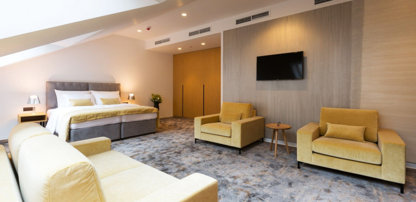 30 м2, терраса с панорамным видом на город, двуспальная кровать или две односпальные кровати. Количество гостей: 2Superior Suite