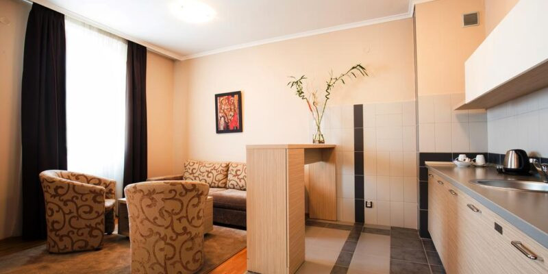 50 м2, двуспальная кровать, гостиная, небольшая кухня со столовой. Количество гостей: 2Exclusive Suite