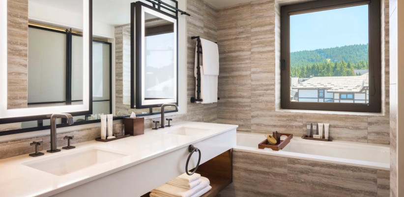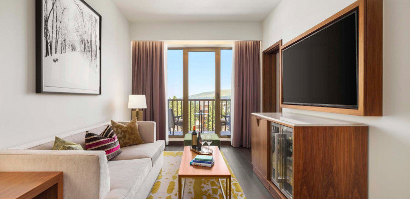 52-81 м2, гостиная с двухместным диваном и пуфом, спальня с кроватью размера «king-size» небольшая мини-кухня (без возможности готовить), гардеробная (в некоторых номерах), иид на горнолыжный склон Балкон (в некоторых номерах)Two Bedroom Suite