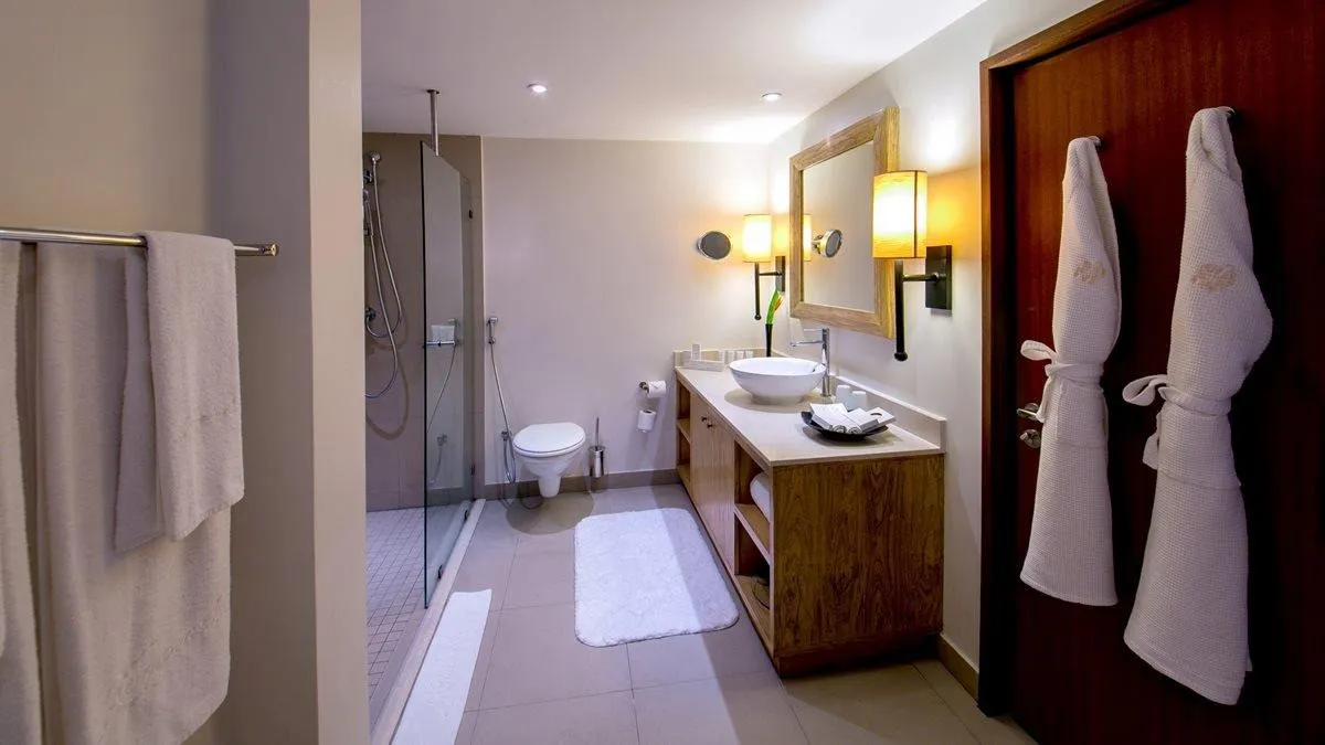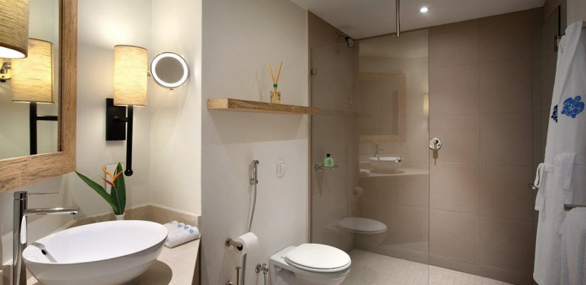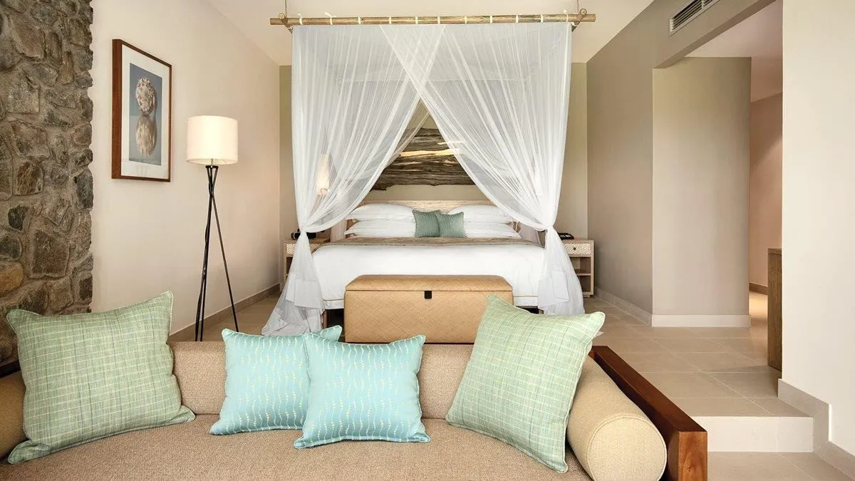 One Bedroom Suite - Sea View Garden (76-80 кв.м). Номера на 1 этаже, состоят из спальни с кроватью king-size, гостиной, ванной комнаты с ванной и душевой кабиной, террасы с видом на океан. Максимально размещение вномере: 3 взрослых + ребенок (до 12 лет).