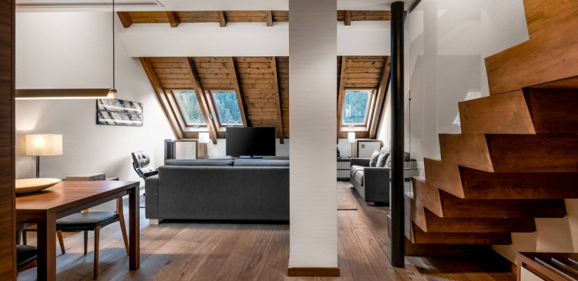 55-80 м2, с видом на горы, спальня с двуспальной кроватью размера king-size, гостиная, обеденная зона.Duplex Attic King Suite