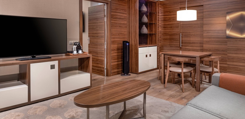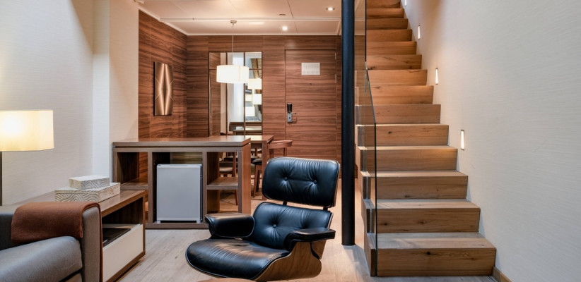 60 м2, спальня на верхнем уровне с двуспальной кроватью размера king-size, на нижнем уровне гостиная, часто с двумя ванными (одна из них с джакузи).Family Suites
