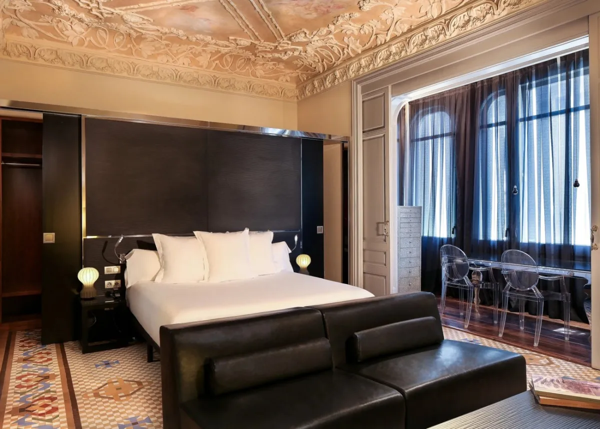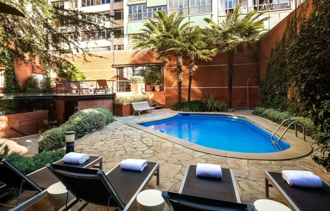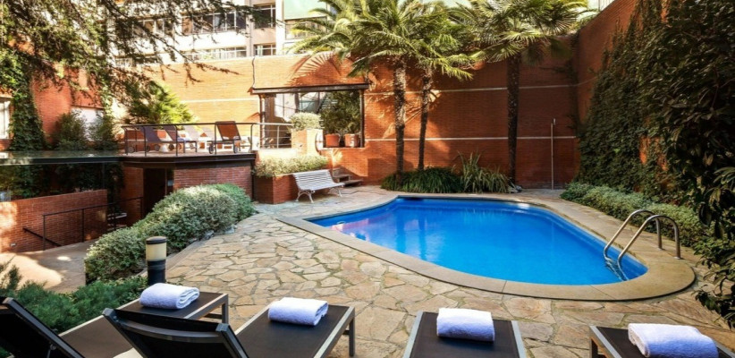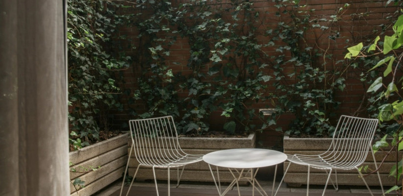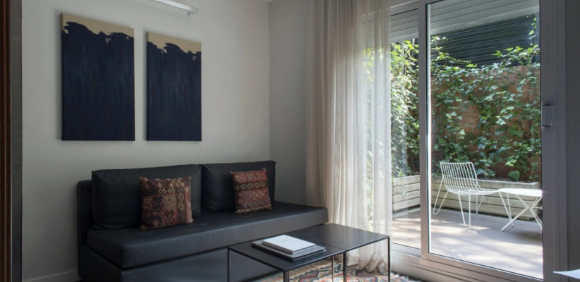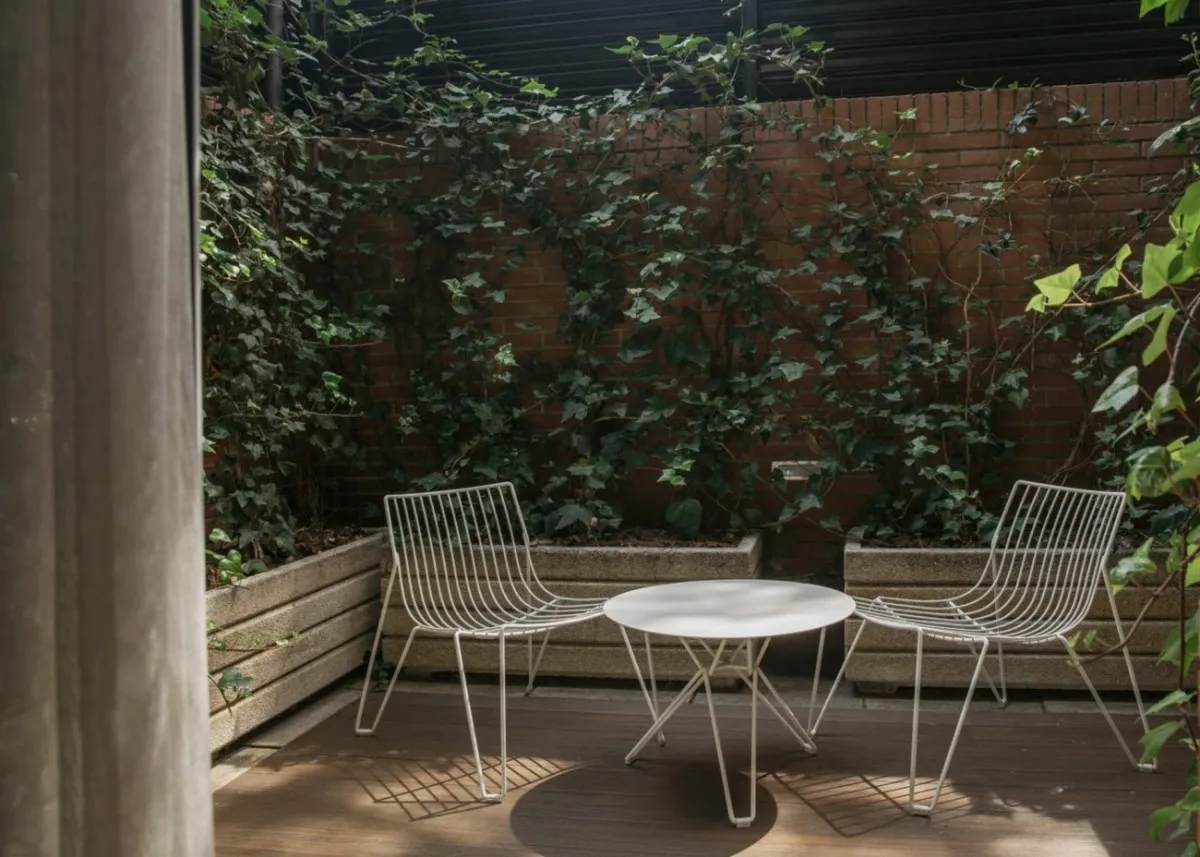 Доступ к номерам осуществляется через зеленый сад в характерном внутреннем дворике барселонского района Эшампле.