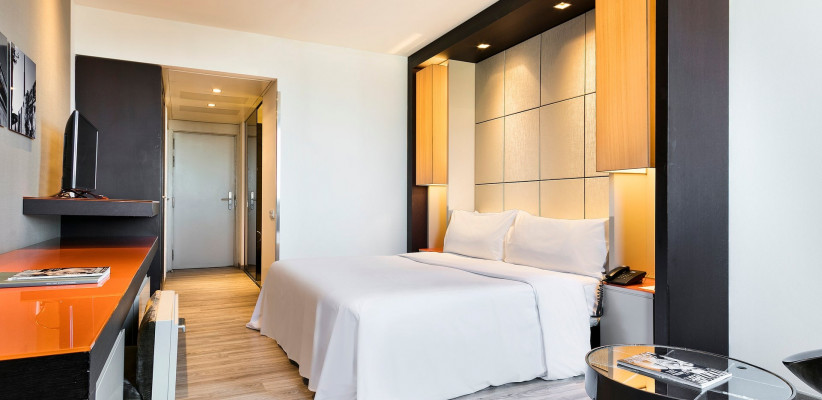 Barcelona Condal Mar Affiliated by Melia расположен недалеко от Международного конференц-центра Барселоны. Концепция отеля – сочетание комфорта, современных удобств и функциональности: светлые, просторные номера с видом на улицу, стильный декор. У бассейна на террасе и на крыше открываются панорамные виды на город. Отель находится в городе, не прямо на пляже. На сайте отмечается что пляж приблизительно в 15‑минутной пешей доступности.