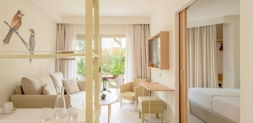 46 м2, терраса, вид на сад, частный сад, двуспальная кровать или две односпальные кровати. Расположен на 1 этаже и имеет выход к бассейну. Максимальное количество гостей: 4Suite/ Люкс