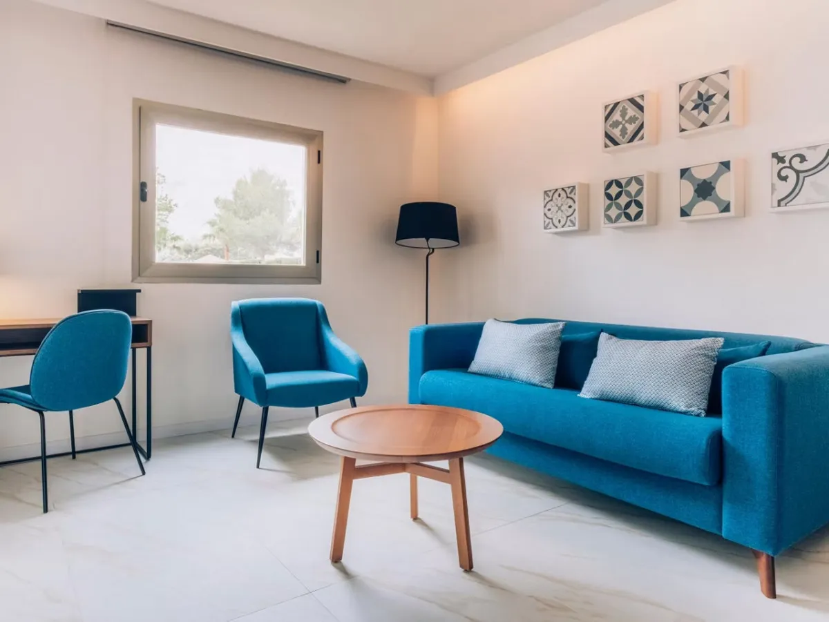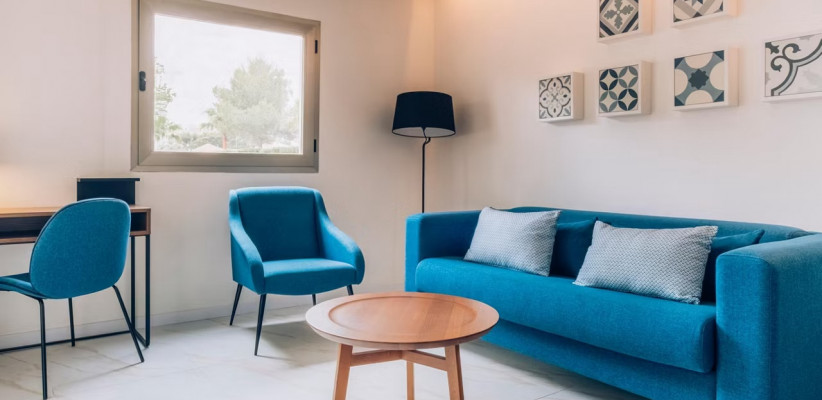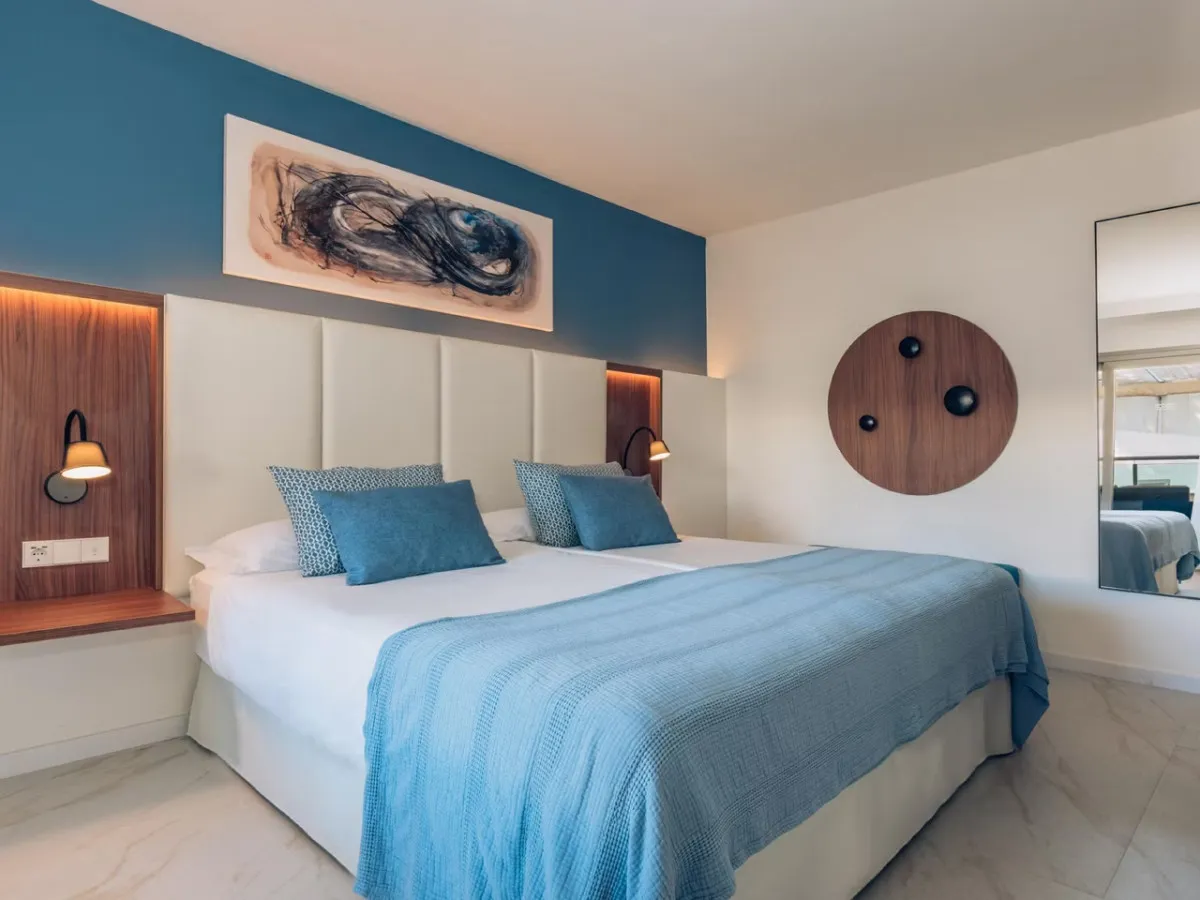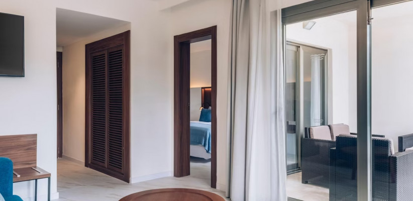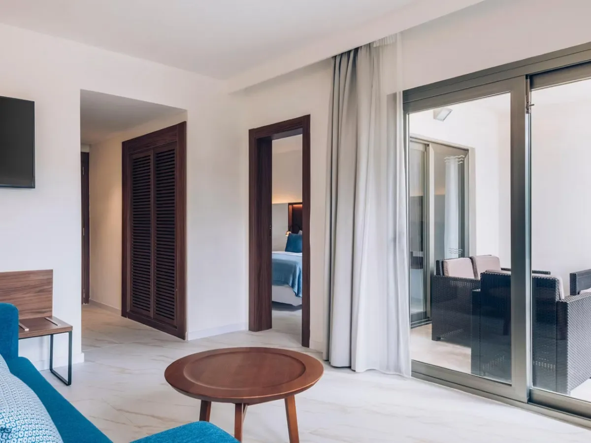 35 м2, терраса, вид на сад/ аквапарк/ бассейн/ море, двуспальная кровать, гостиная с диваном-кроватью. Детская кроватка по запросу. Часть люксов расположена в зоне детского бассейна. Максимальное количество гостей: 4