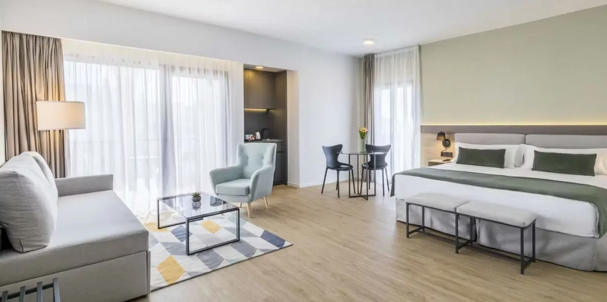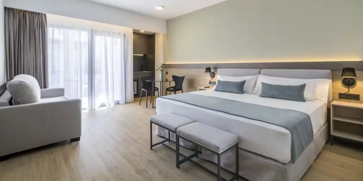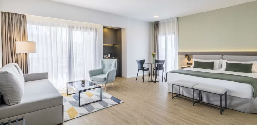 54 м2, с двумя односпальными кроватями, диваном-кроватью и меблированной террасой, количество гостей: 4 человека (максимум 3 взрослых / максимум 2 ребенка)Джуниор сьют/ Junior Suite