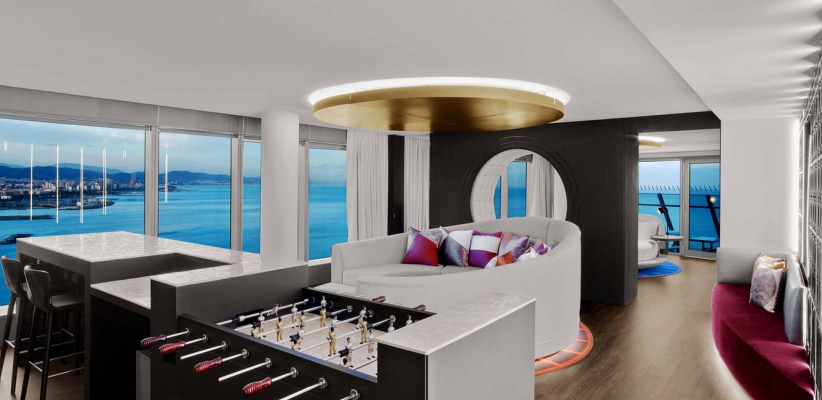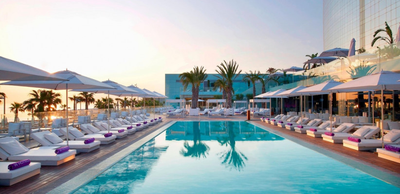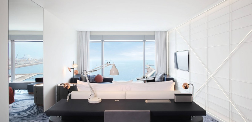 Отель W Barcelona находится прямо у пляжа, в районе Barceloneta, всего в около 17 км от международного аэропорта Barcelona–El Prat (BCN) и всего в 15–20 минут езды от центра города. Здание W Barcelona выполнено знаменитым архитектором Рикардо Бофилем и имеет форму «паруса», что делает его архитектурным символом города.