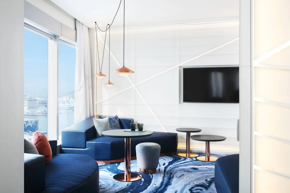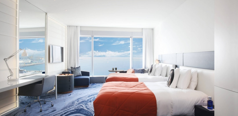 Отель сочетает современный дизайн и роскошь: панорамные окна в номерах открывают виды на Средиземное море или город, а высококлассные удобства включают спа-центр, фитнес-зал, открытые бассейны на террасах, рестораны и бары с авторской кухней.